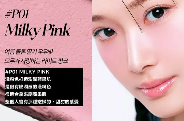 #P01 MILKY PINK (淺粉色打造澎潤蘋果肌)