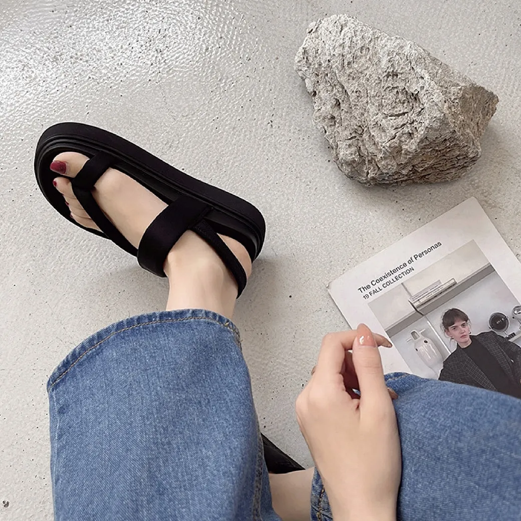 涼鞋鞋帶是 #彈力軟布縫製,一點都不勒腳