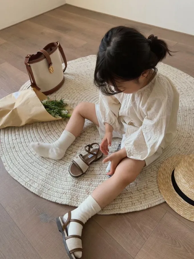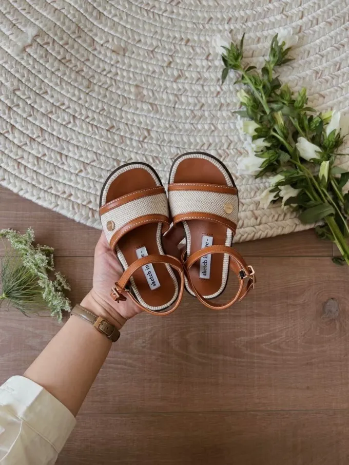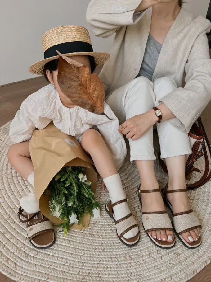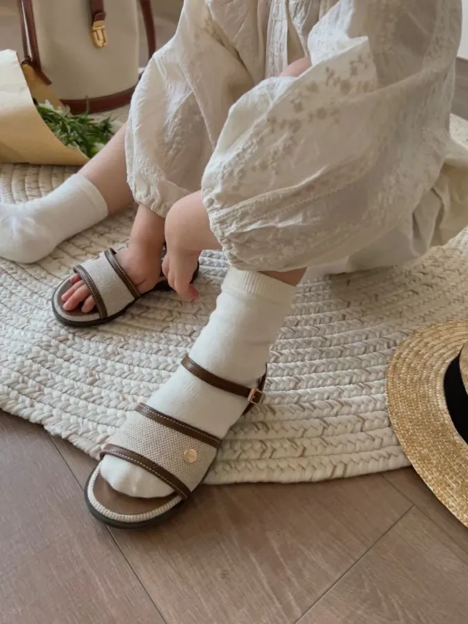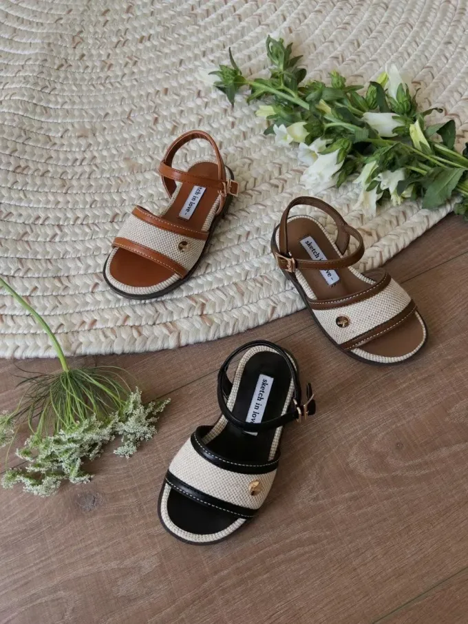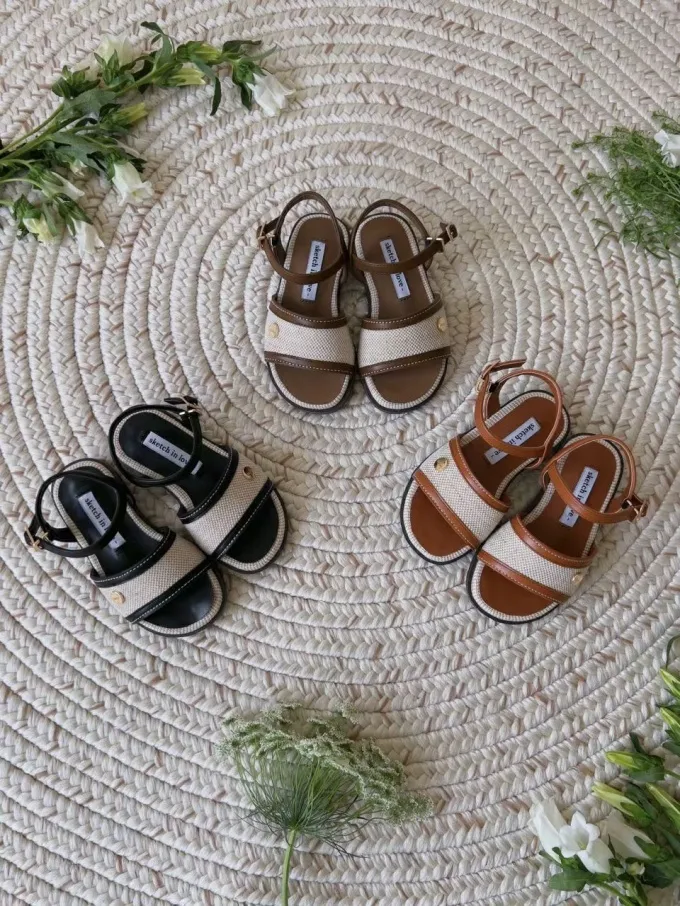 【現貨】超美配色牛皮綁帶涼鞋(小孩款)