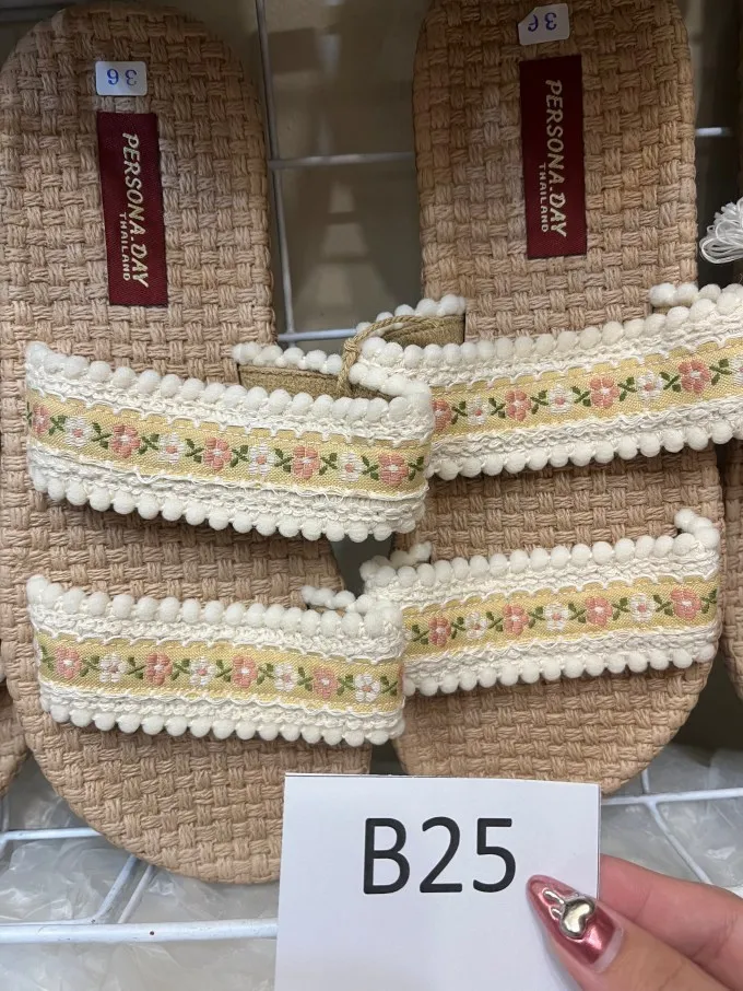 圖案設計雙帶草編拖鞋_B25