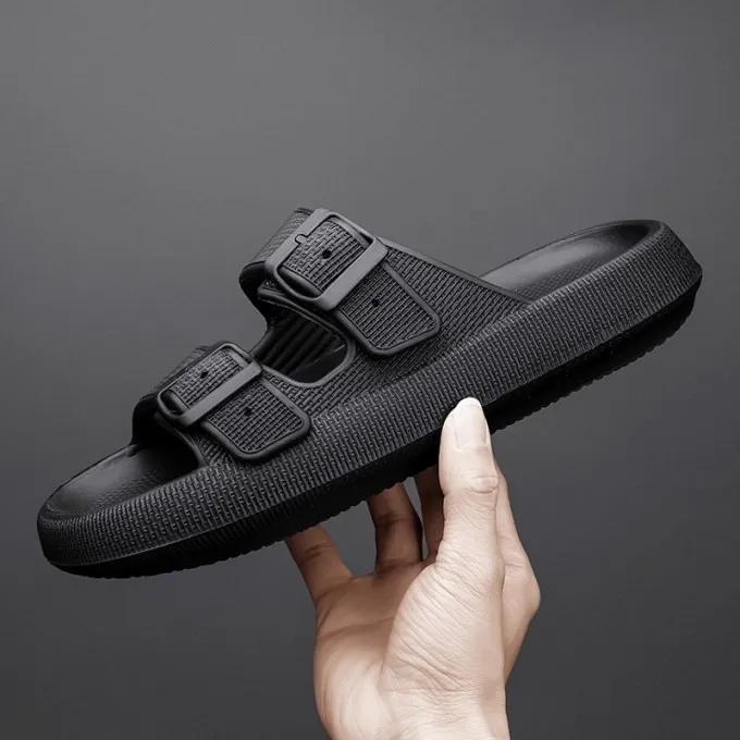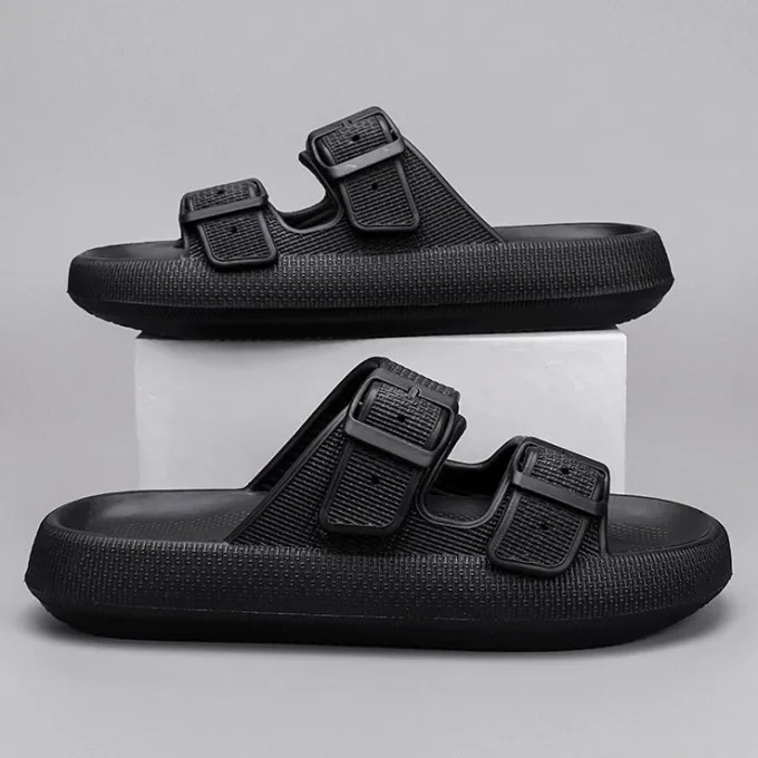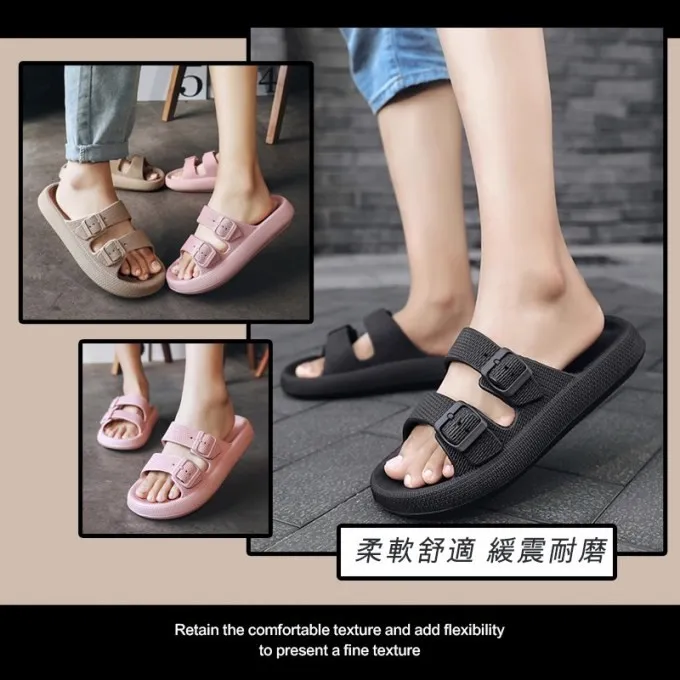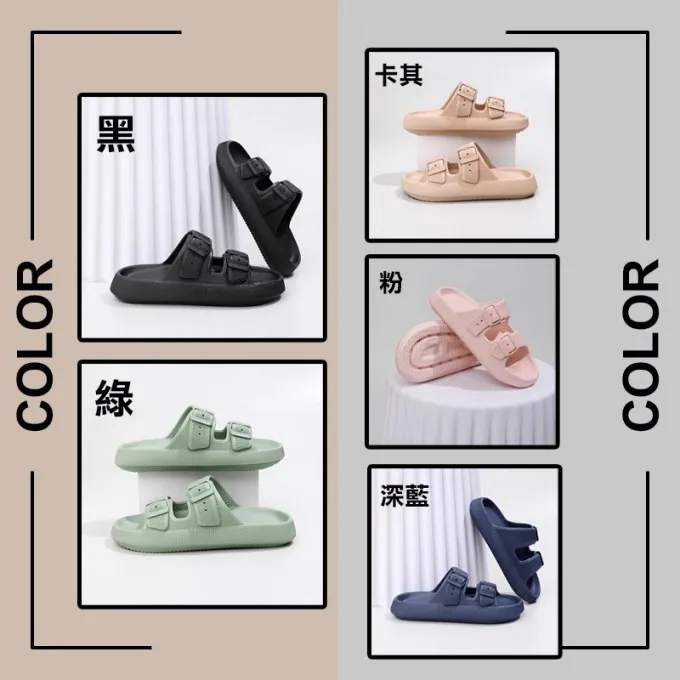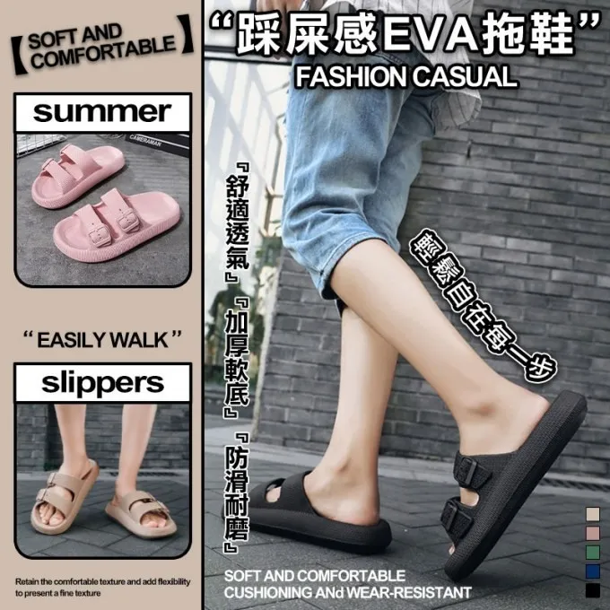 【 雲朵感~百搭雙排扣厚底EVA拖鞋(男女) 】