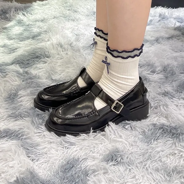 東大門復古英倫馬銜釦厚底樂鞋_E24
