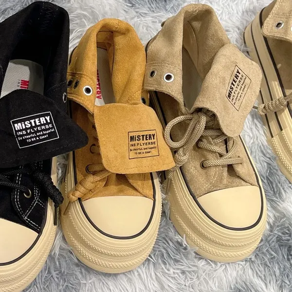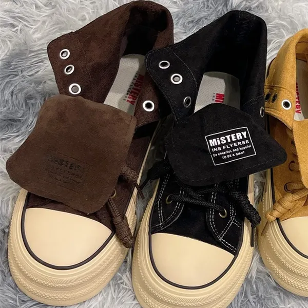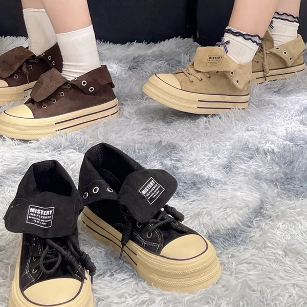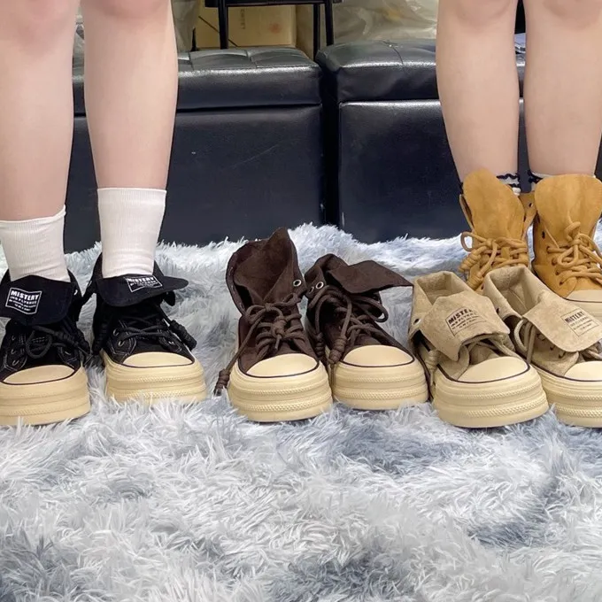 厚底復古兩穿可反摺高筒帆布休閒鞋_E25