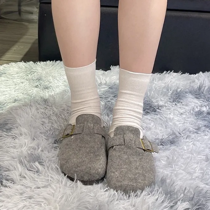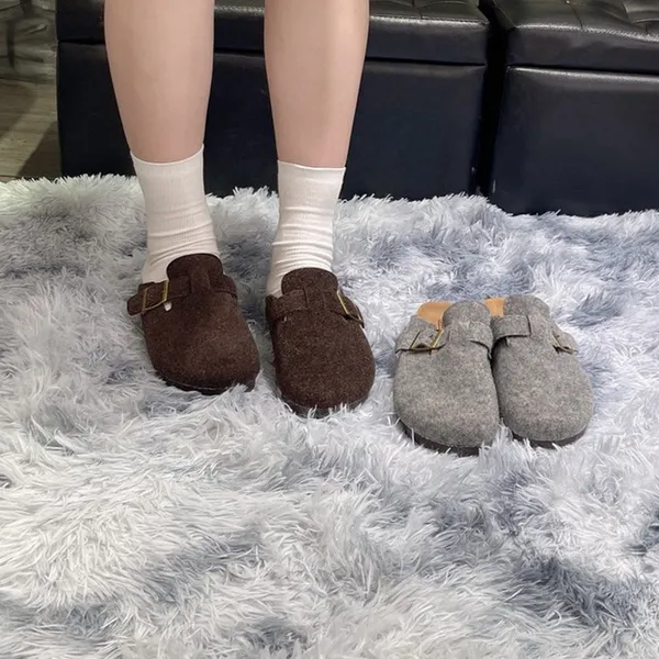 毛呢復古金屬皮帶釦勃肯拖鞋_E30