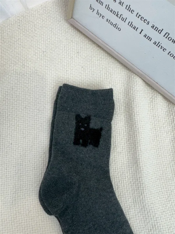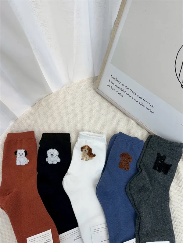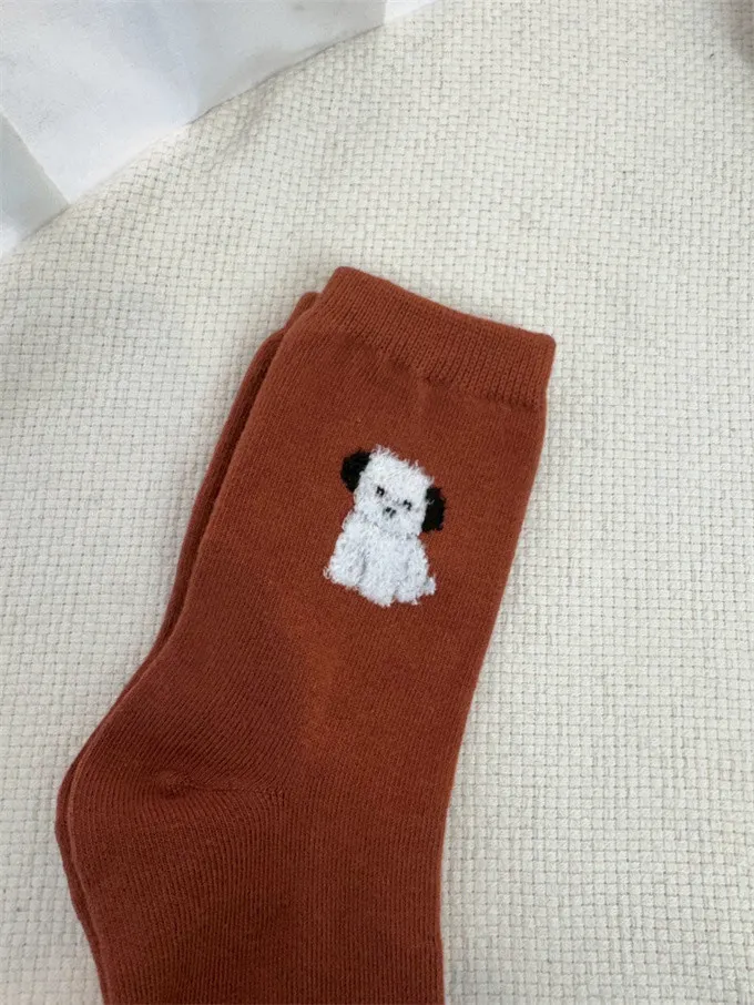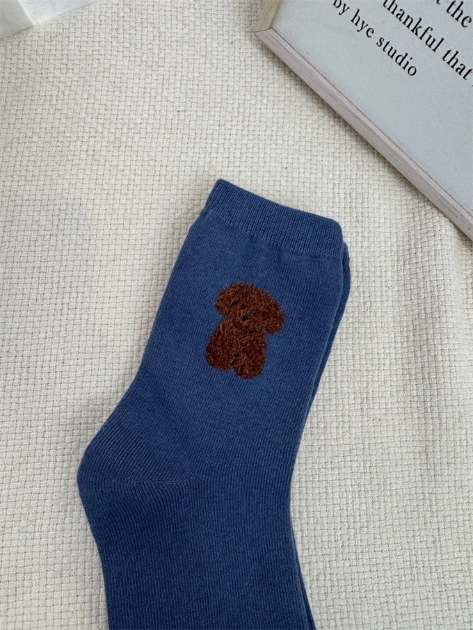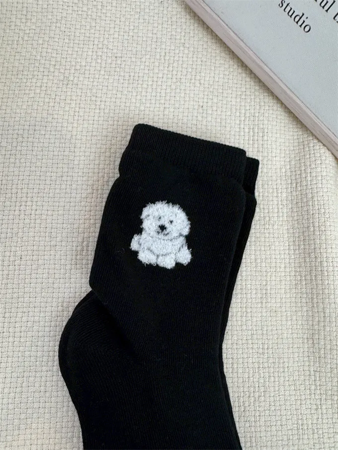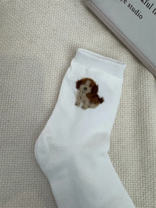 【現貨】韓國絨絨小狗刺繡襪