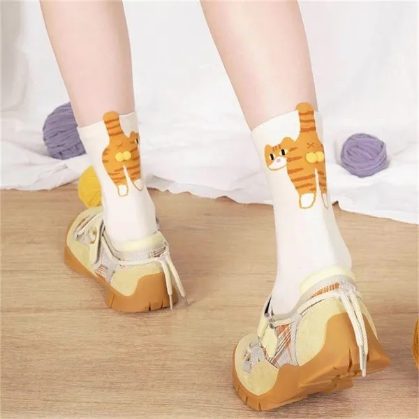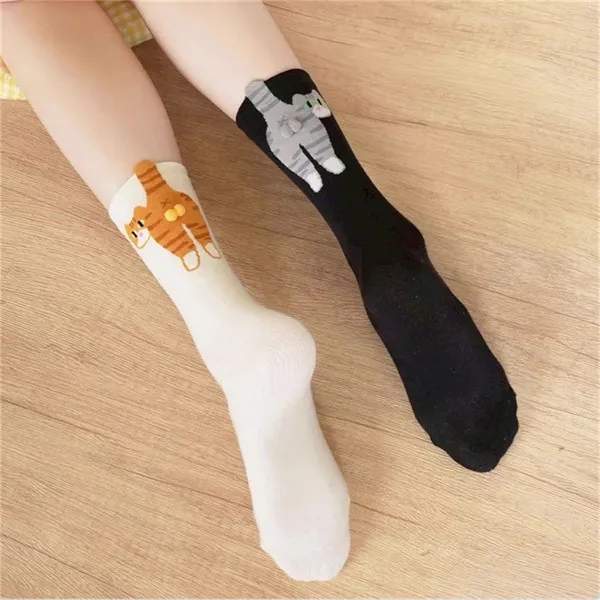 超可愛的貓咪蛋蛋中筒襪(2雙/組)