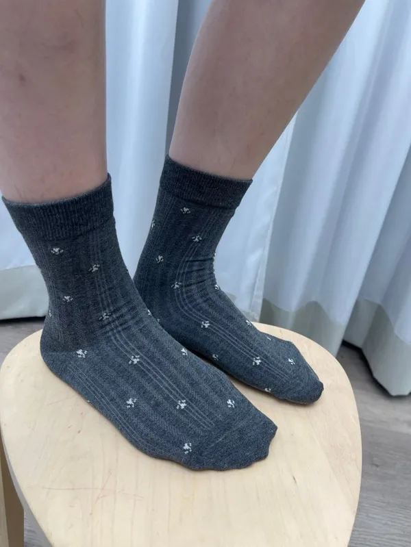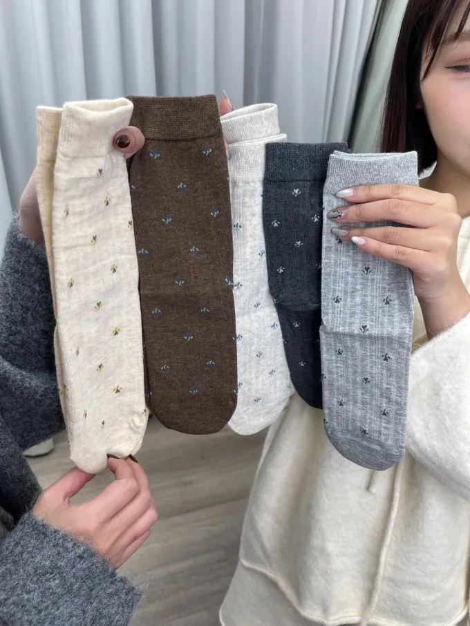 【歡慶價】碎花條紋堆堆襪_A08