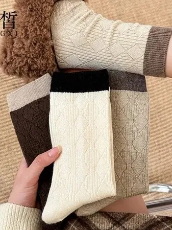 【福利標】韓系撞色羊毛中筒襪_福