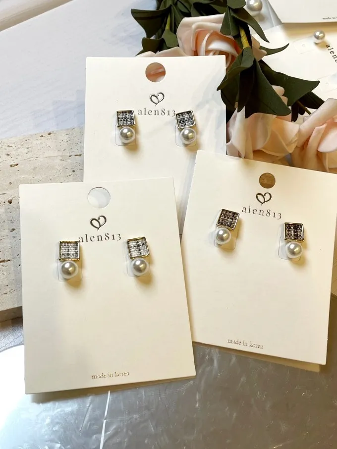 方形小香風織紋搭珍珠耳環_P11