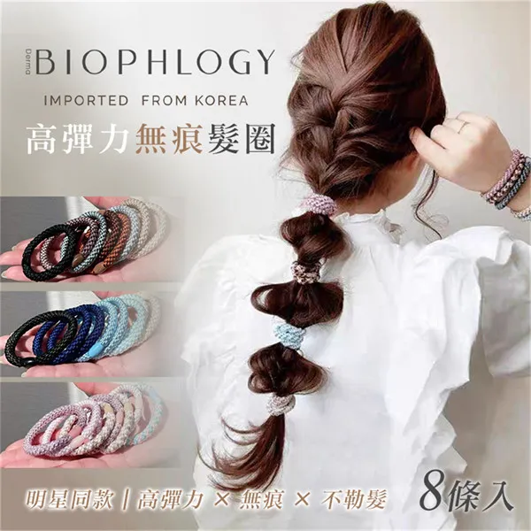 韓國 BIOPHILOGY 高彈力無痕髮圈 8條入