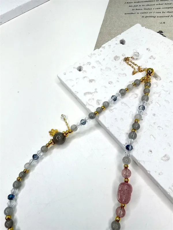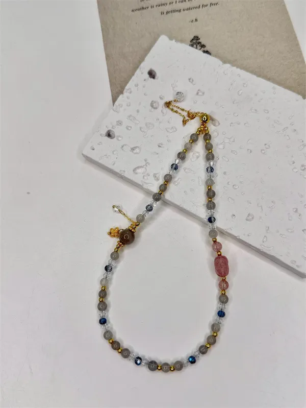 草莓晶貔貅+拉長石 雙圈_E04