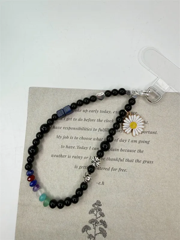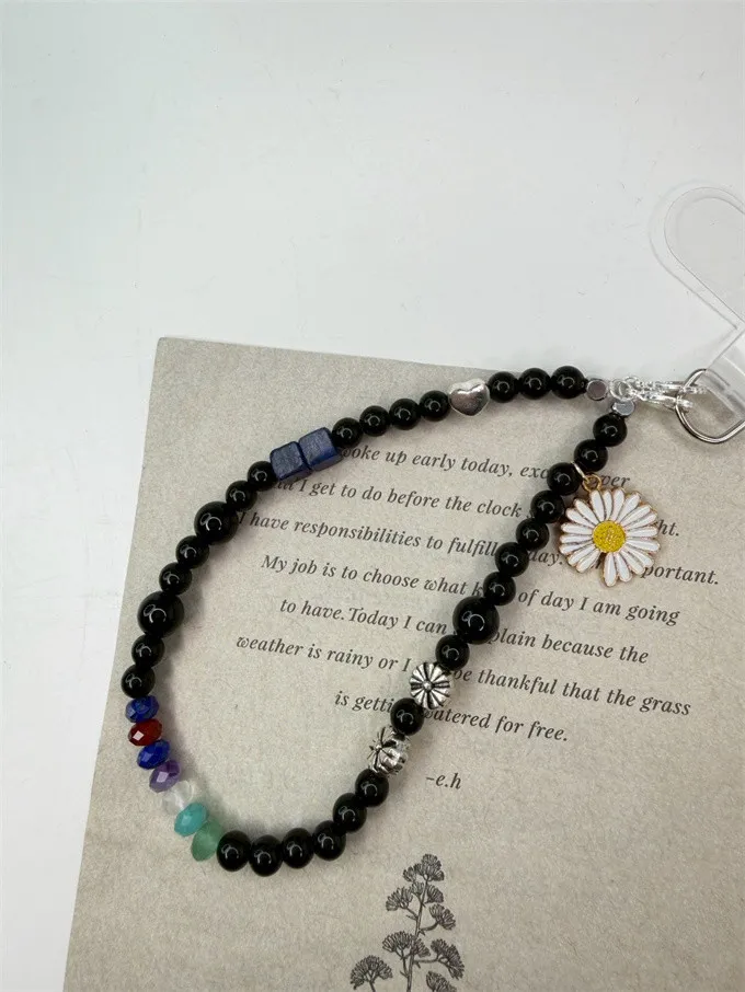 GD款-黑曜石+小雛菊 手挽鍊_E12