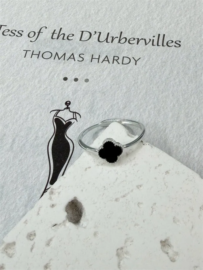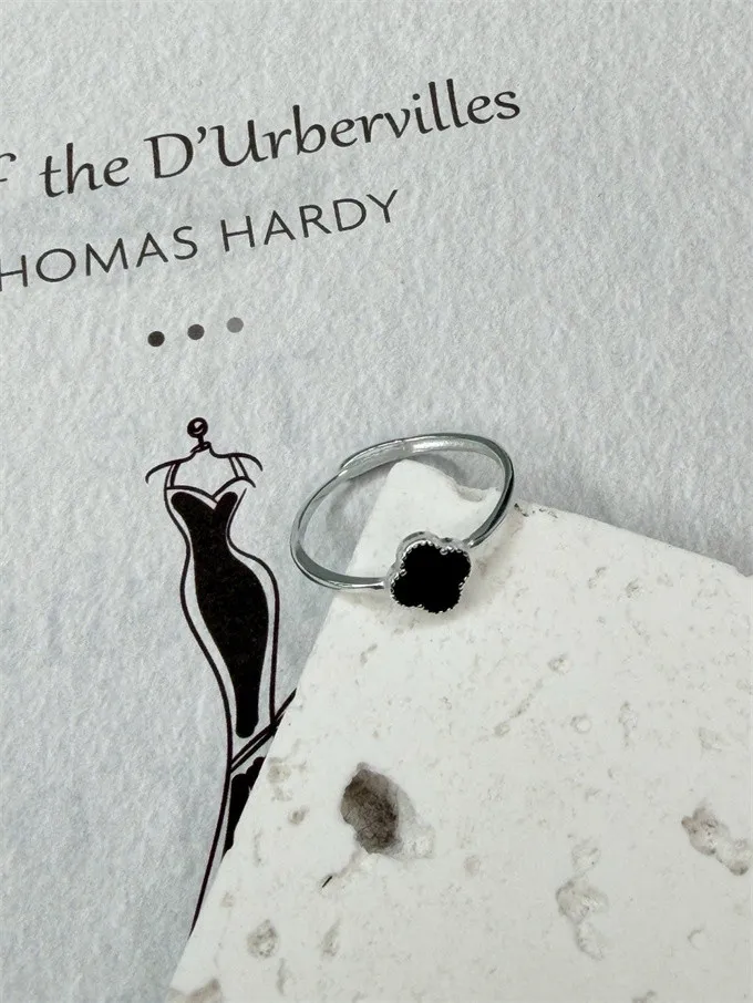 足銀-四葉草(黑) 戒指(戒圍可調)_E31