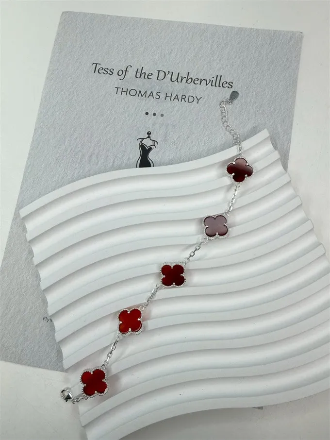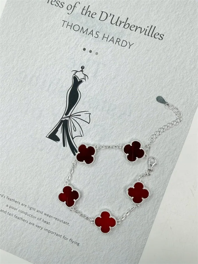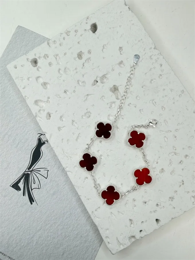 足銀-紅瑪瑙四葉草 手鍊_E32