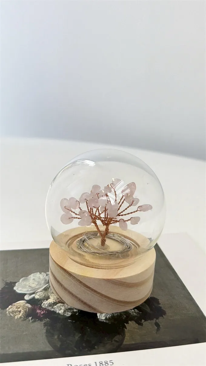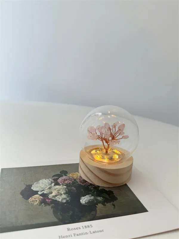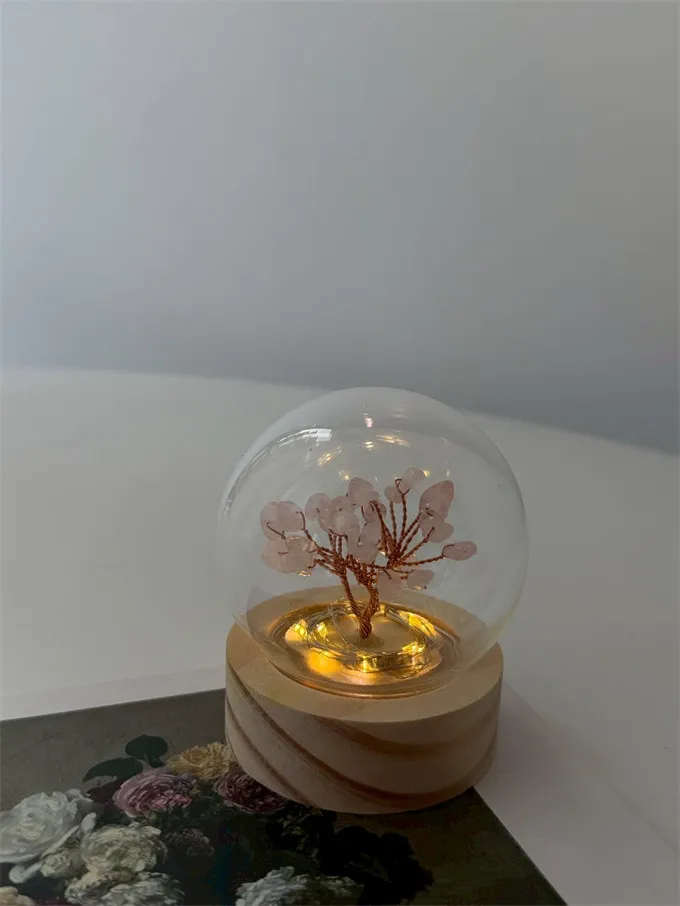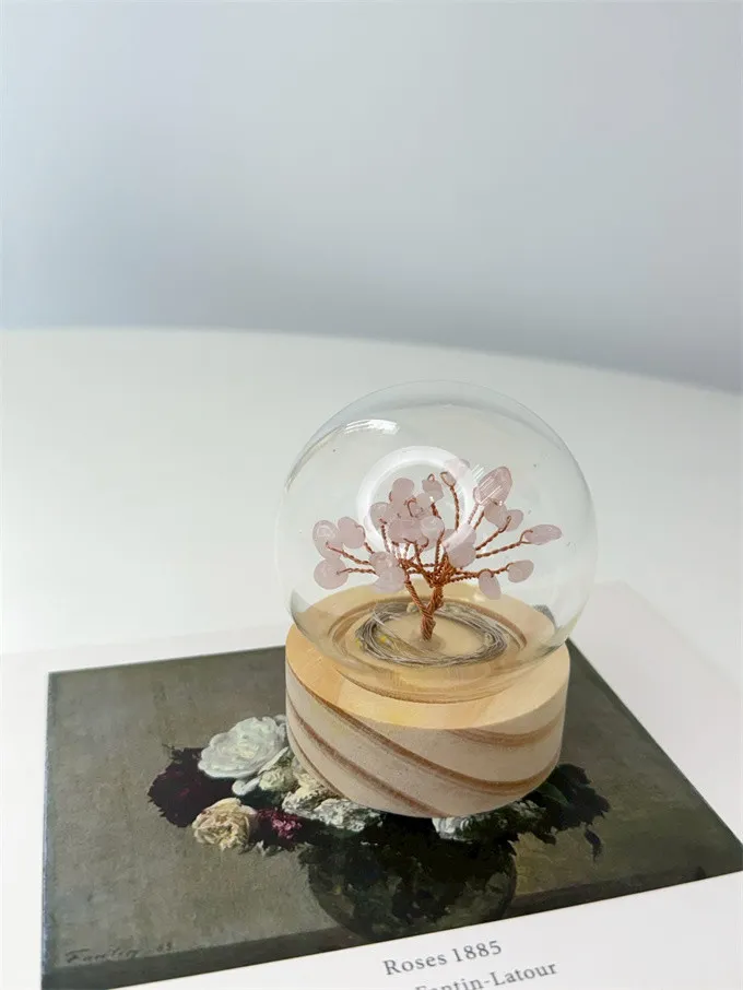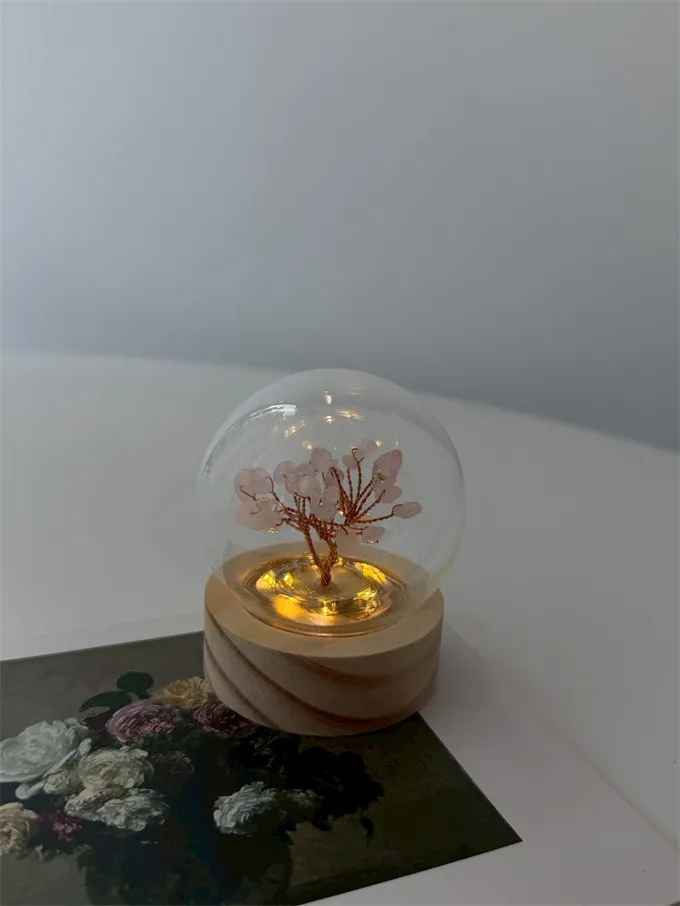 玻璃罩招財樹夜燈 (粉晶)_E18