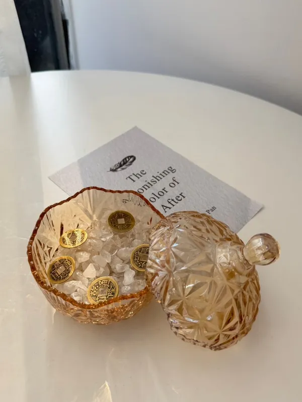 琉璃琥珀鑽石消磁杯+白水晶碎石 *贈聚財五帝錢_E09