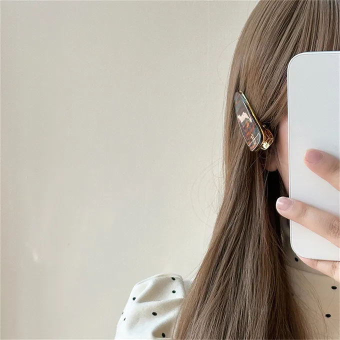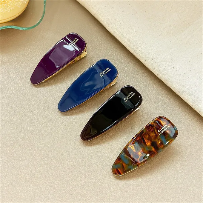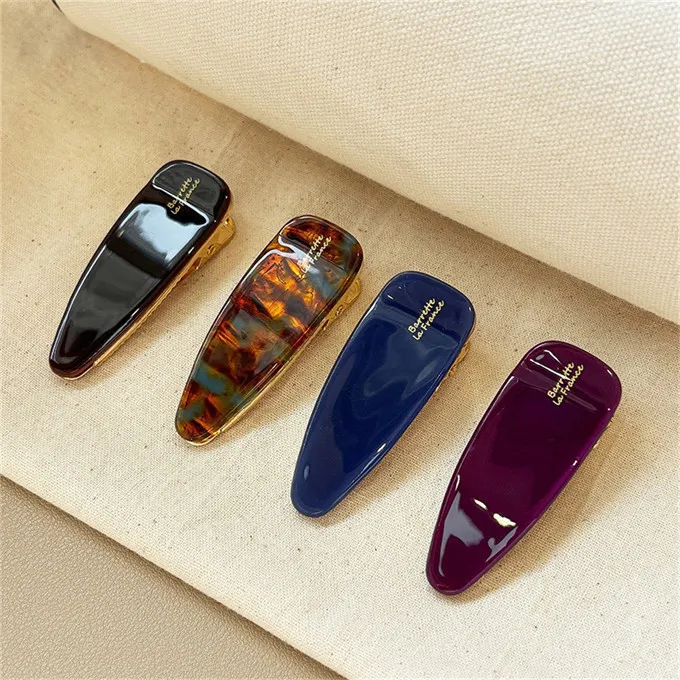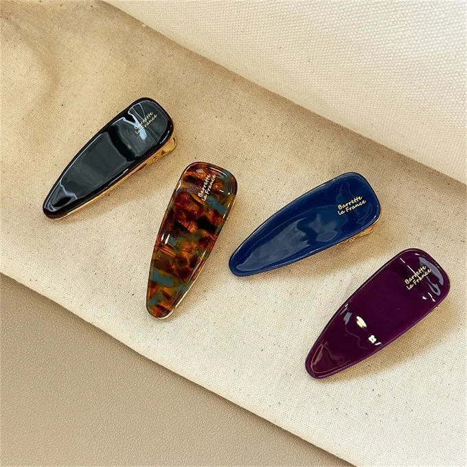 韓國 2025新款france側邊瀏海醋酸光澤氣質髮夾(4入/組)