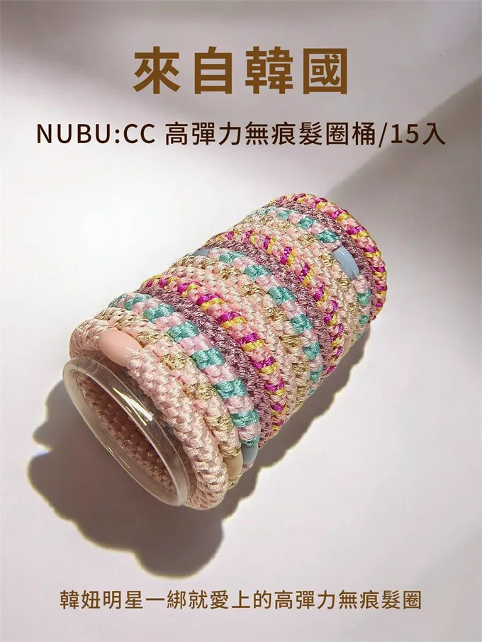 【冬季限定 韓國 Nubu:CC高彈力無痕髮圈桶15入】