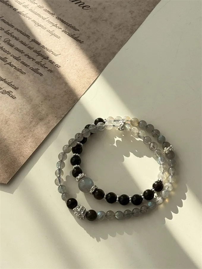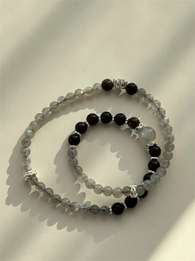 拉長石提升直覺與心靈平衡,銀曜石增強防護與自信,雙晶互相加持,形成穩定清晰的能量循環,使心靈平衡、氣場純淨,正向能量自然流動。