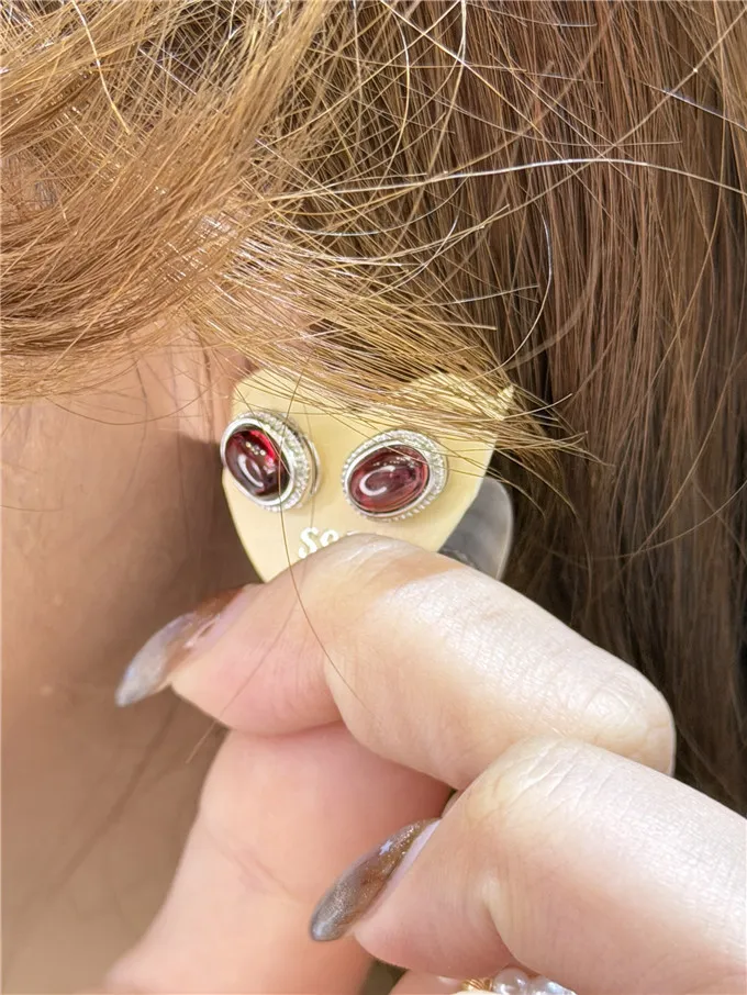 小巧精緻的純銀耳針鑲著深邃的酒紅,是在溫柔地提醒我:「女人不一定要光芒萬丈,但必須擁有自己獨特的質感與底氣!」不管生活再多鳥事,都要在細節處點綴自己的美。