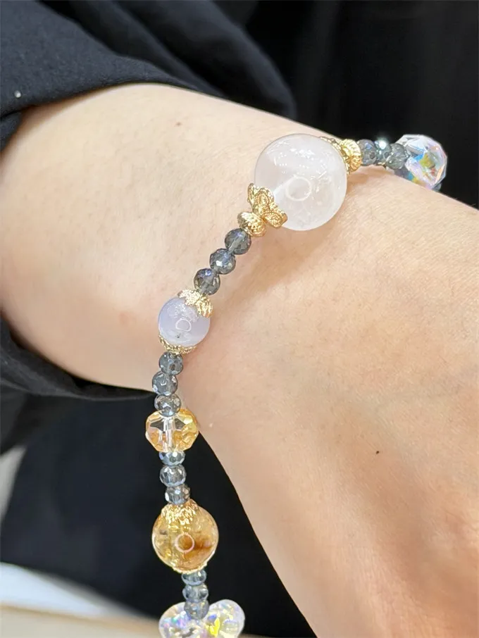 白幽靈的純淨配上黃水晶的貴氣,是在溫柔地提醒我:「清空了心裡的垃圾,才有空間裝進更多的愛與財氣!」不用看別人臉色,妳就是自己的守護神。