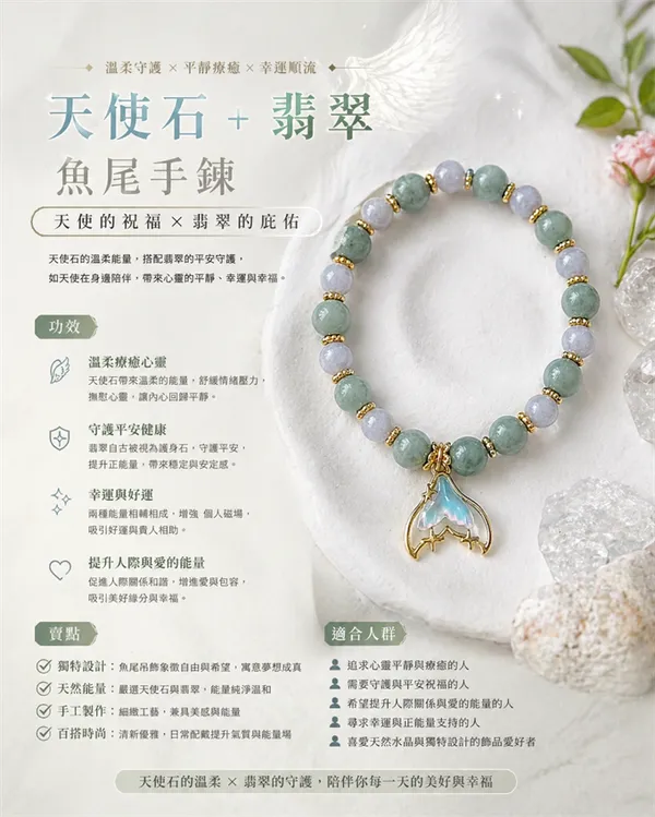 ✔天使石×翡翠雙主石|療癒+守護一次到位