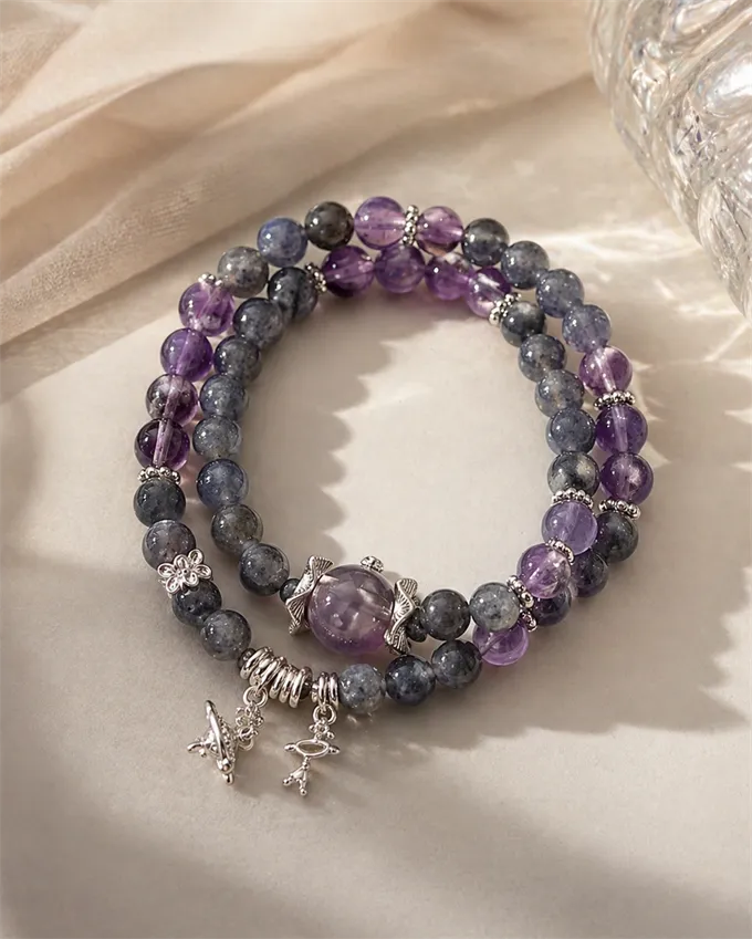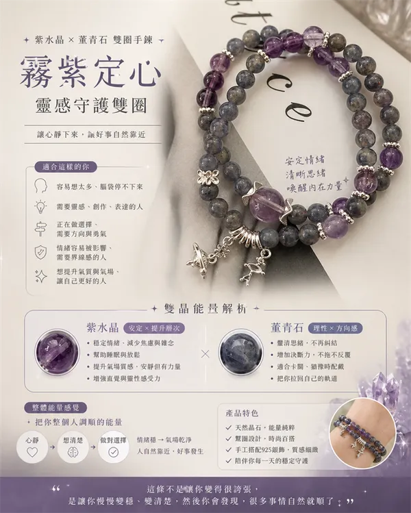 紫水晶的柔和穩定,搭配菫青石的清晰理性