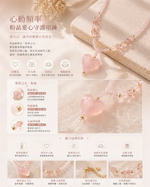 粉晶愛心主石|直接鎖定桃花與人緣能量