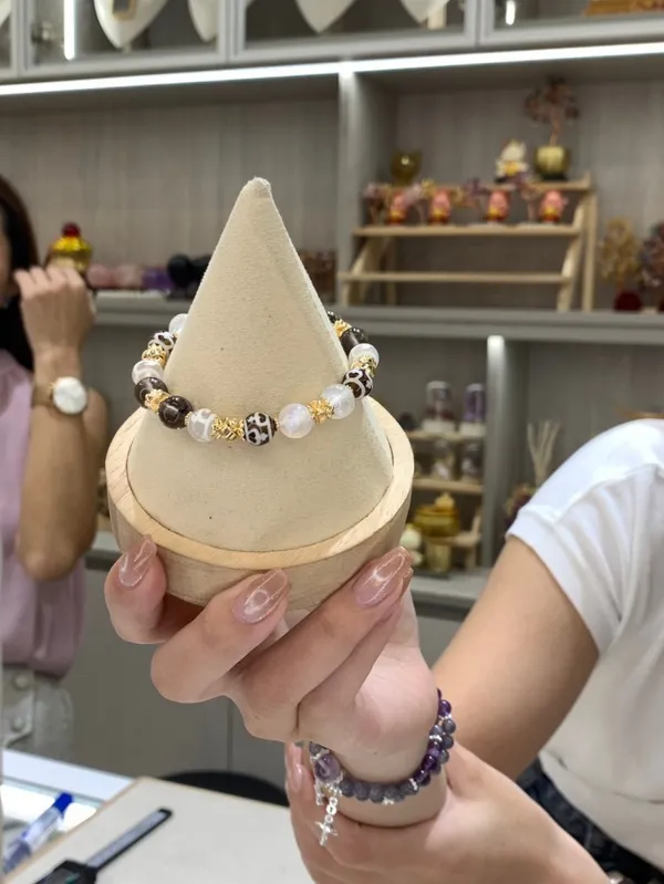 黑肉寶瓶天珠+白肉度母天珠 手鍊_J44