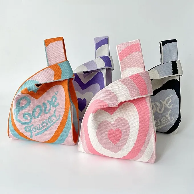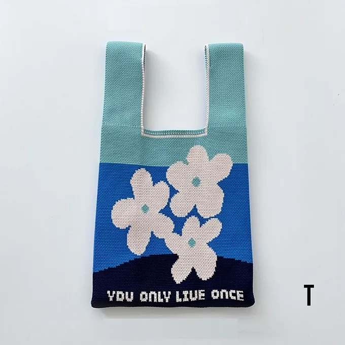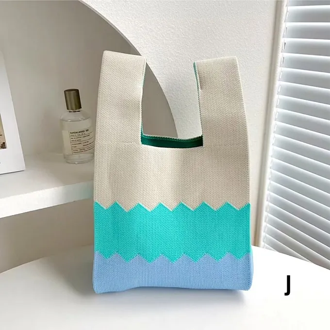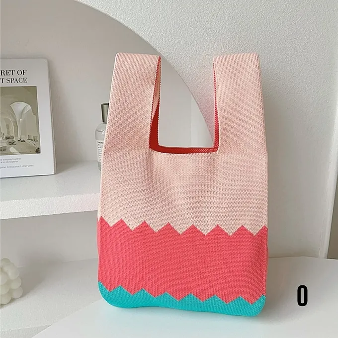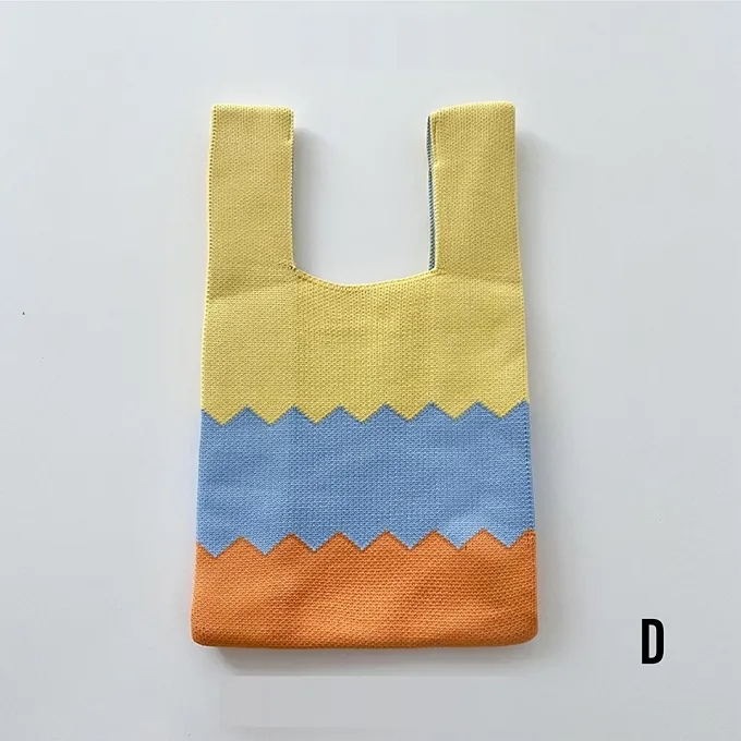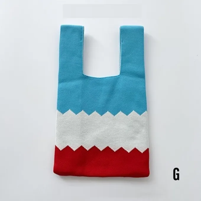 【現貨】小眾設計少女可愛拼色針織手提包