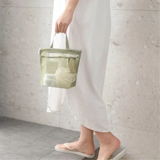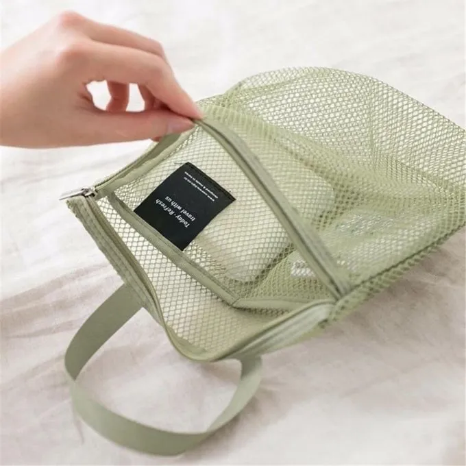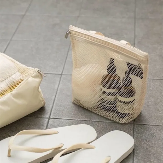 平常露營或外出 常常都要自己攜帶盥洗用品 有時候東塞一瓶西塞一瓶 常常都會找不到 像這樣把盥洗用品收納成一袋 是不是很方便 而且網狀設計 透氣性良好 又方便拿取 洗澡淋濕了也方便晾乾 袋子顏色也超好看 可以多買幾個分裝衣服也超方便!
