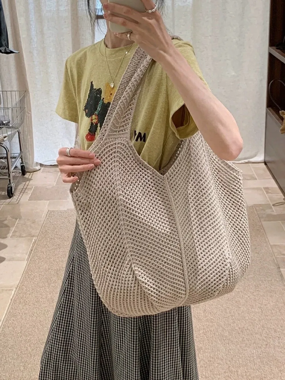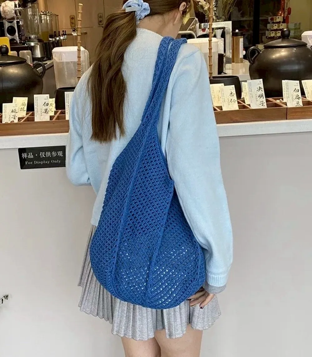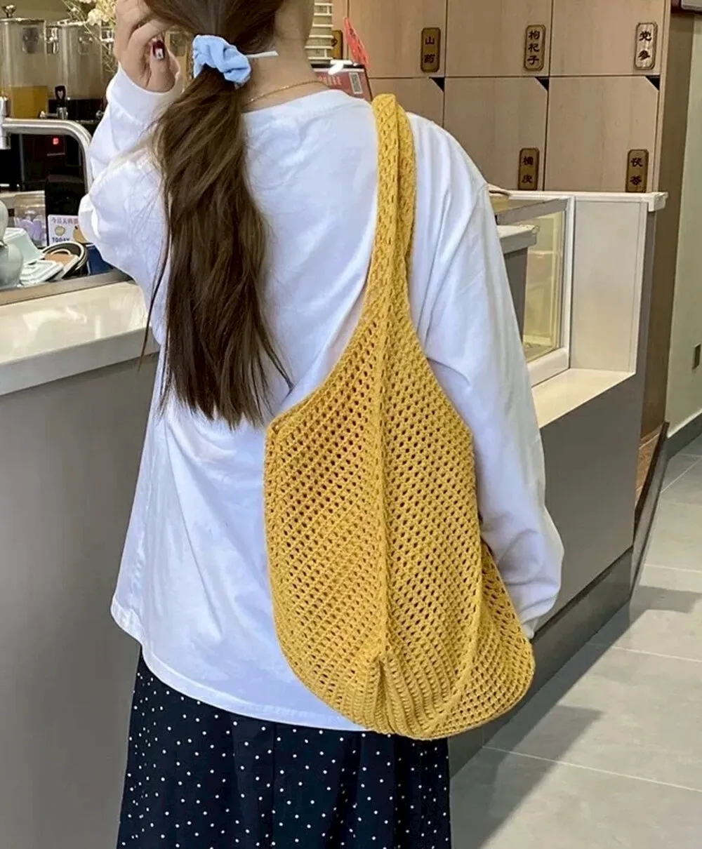 【現貨】慵懶風大容量編織單肩托特包_A05