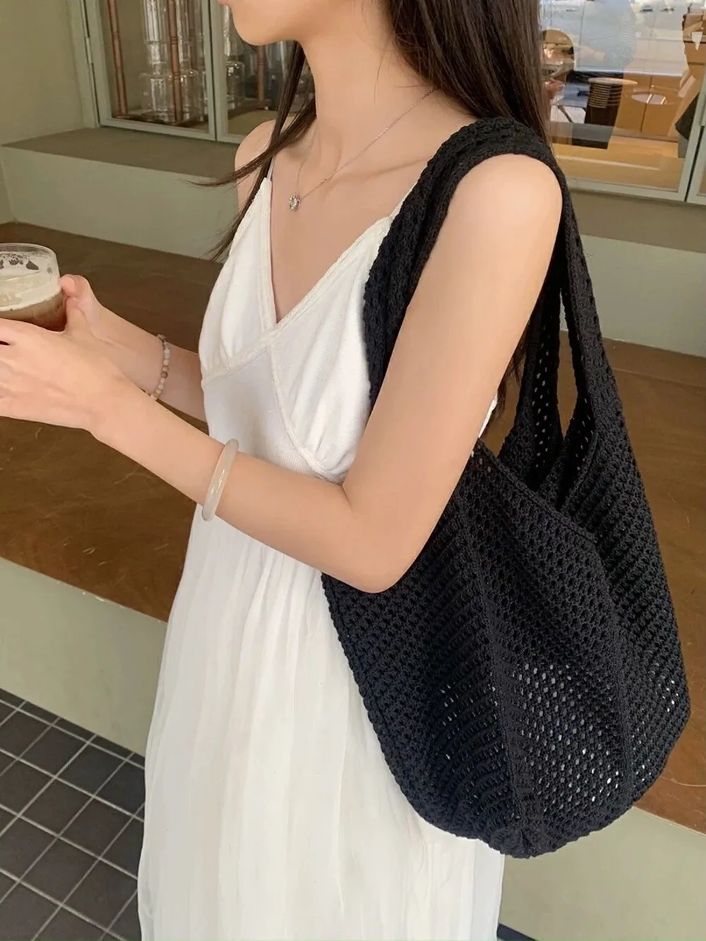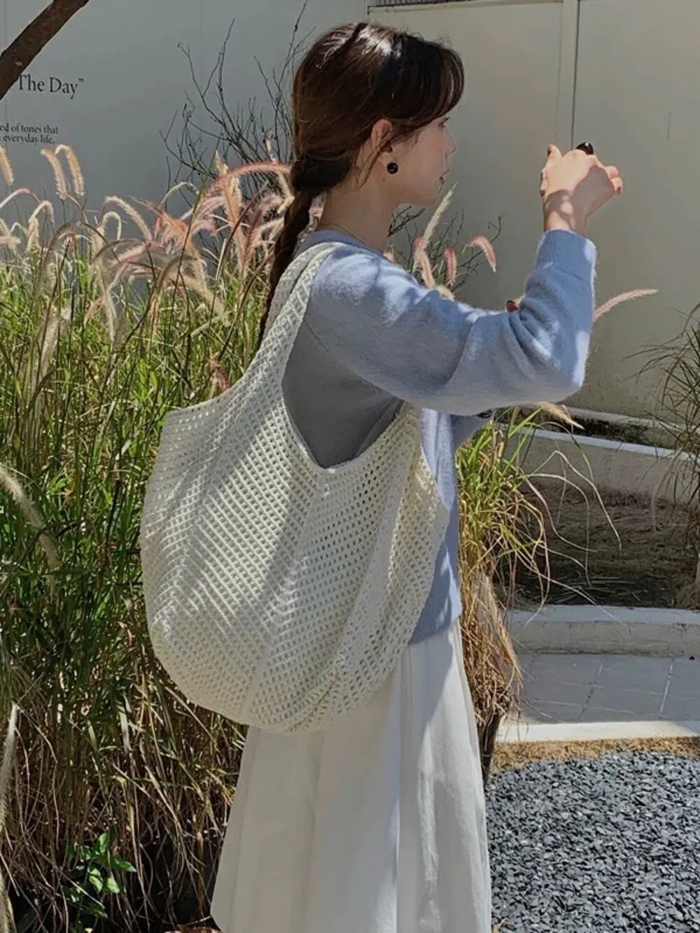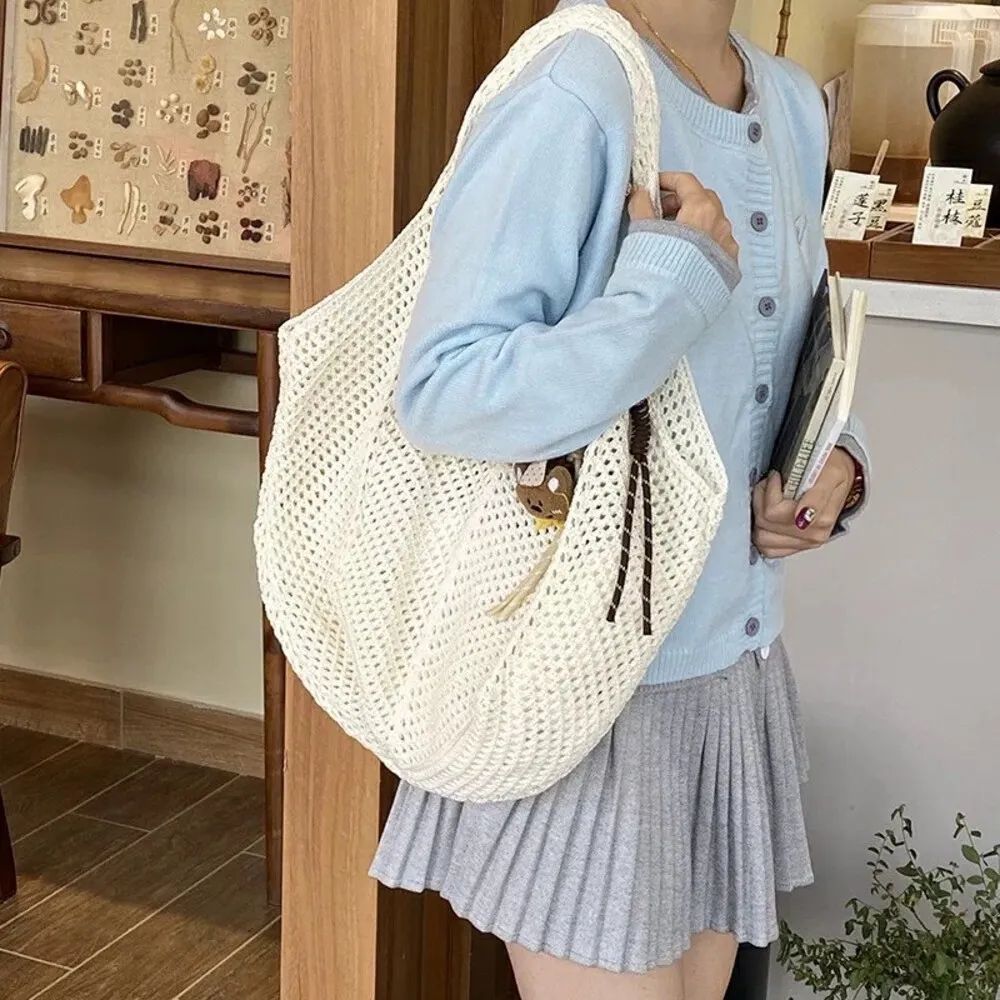 【現貨】慵懶風大容量編織單肩托特包_A05