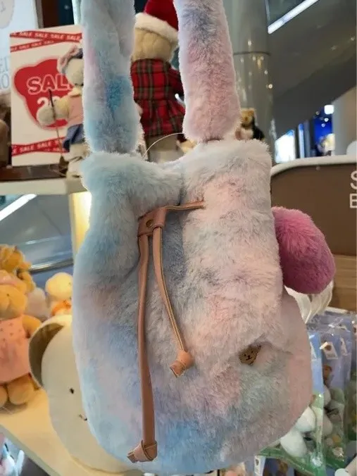 泰迪香水熊 棉花糖毛絨皮革抽繩水桶包_A42