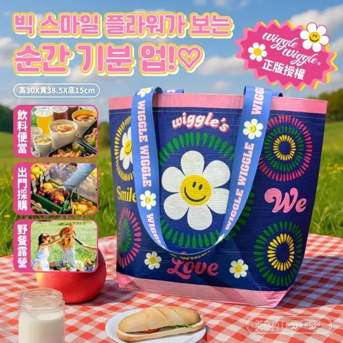 【韓國 Wiggle Wiggle®正版授權 好心情購物袋(微笑小花款)】