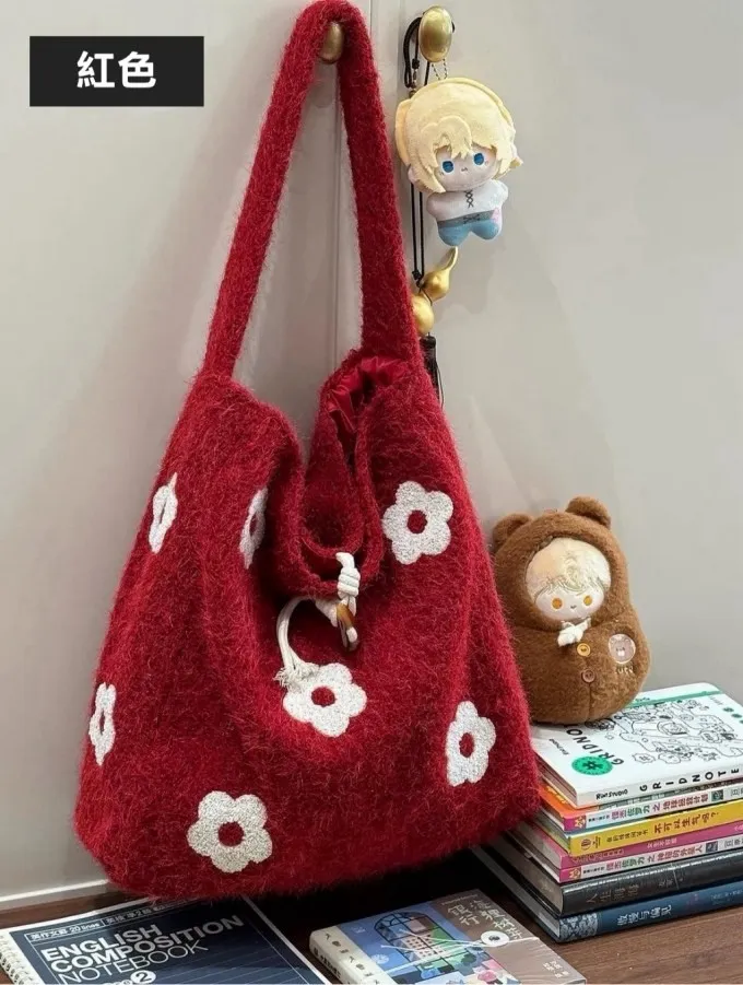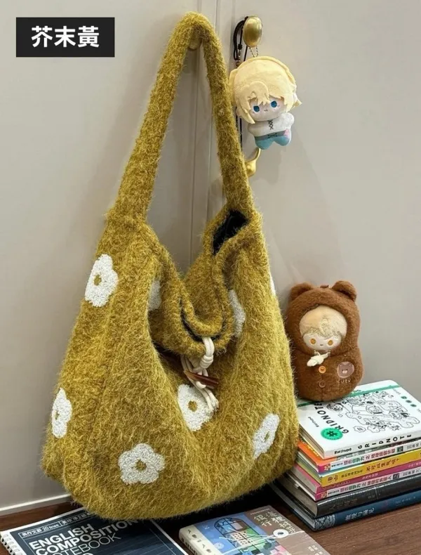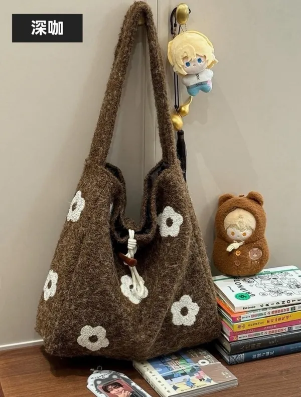 溫柔系羊毛氈花朵單肩包