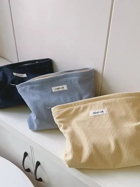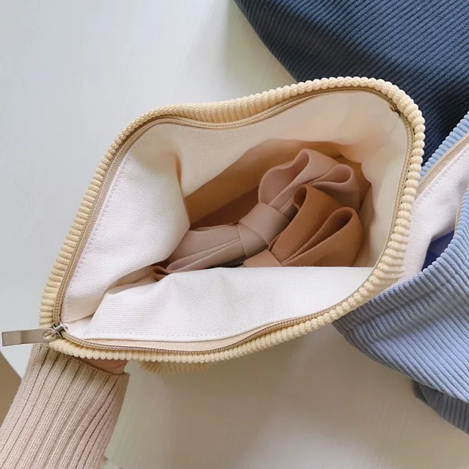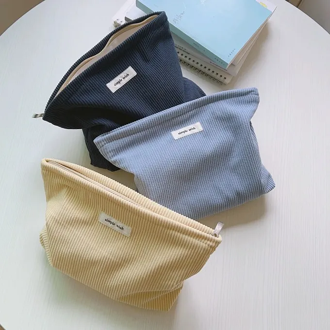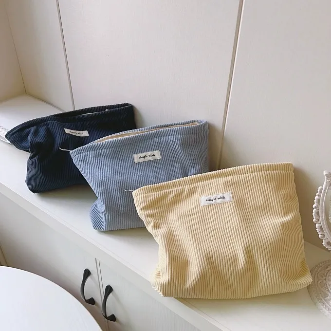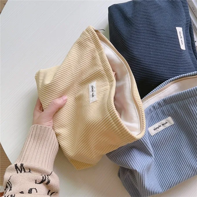 文藝簡約純色燈心絨手拿/化妝包|商品介紹