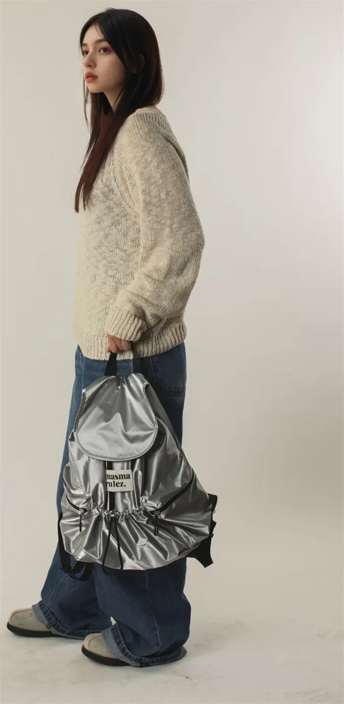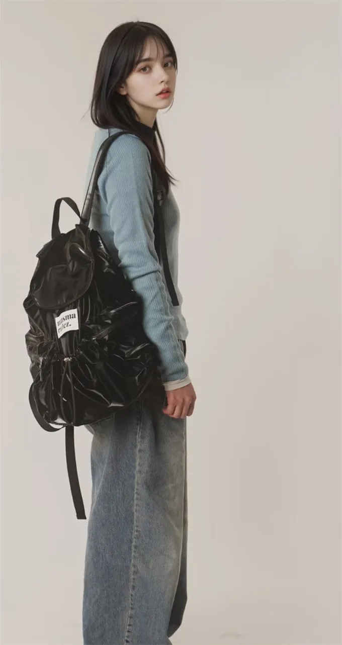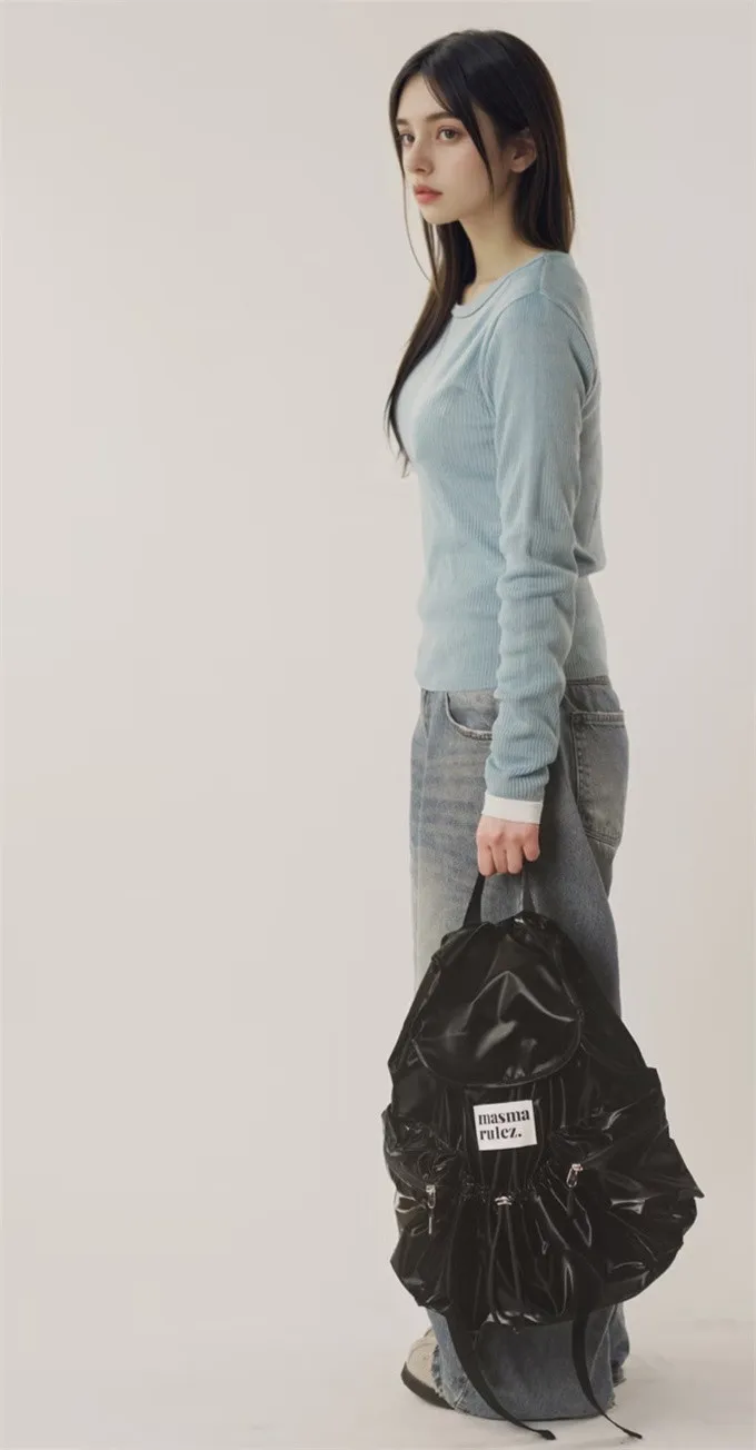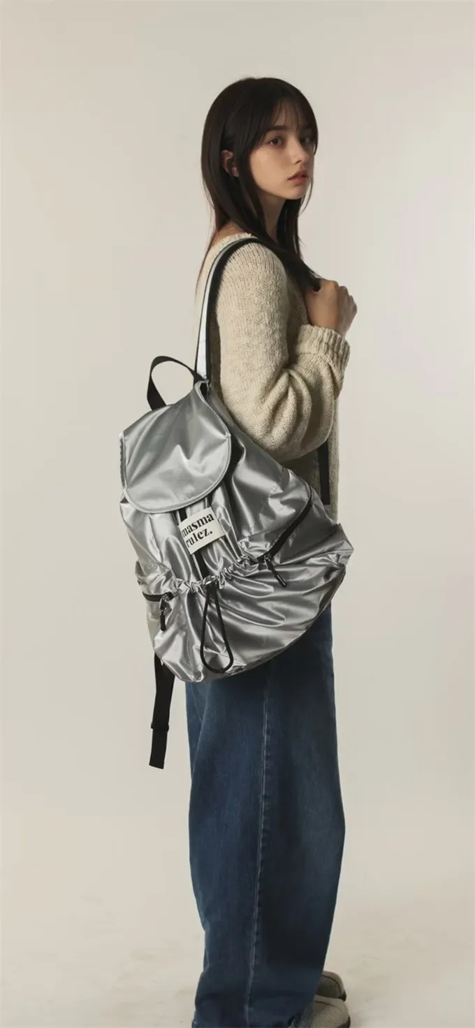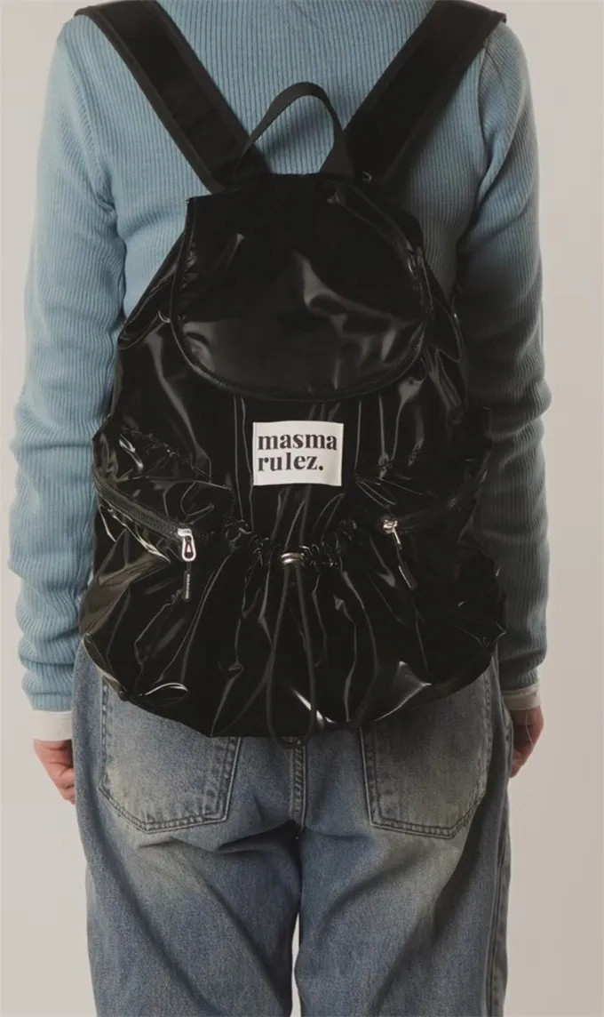 🎒String flap backpack|漆皮繩帶翻蓋背包