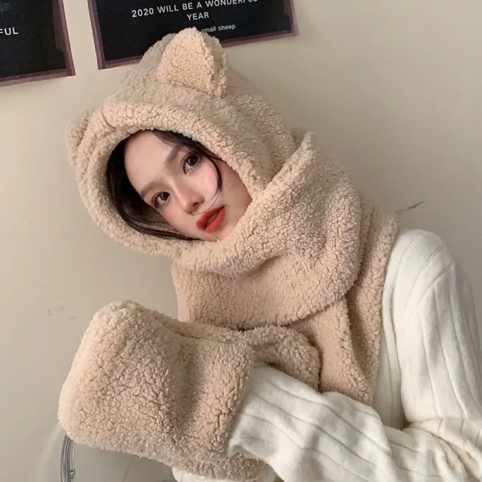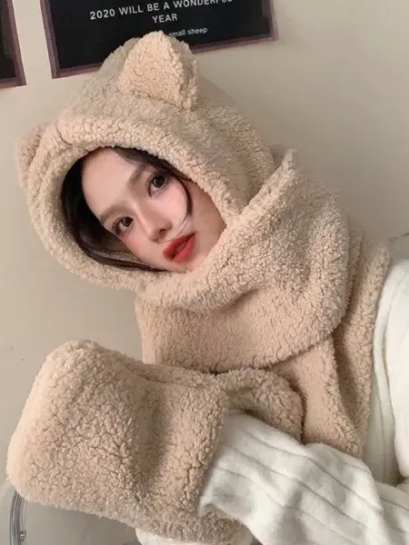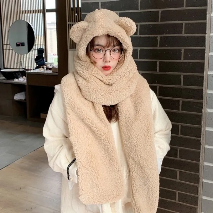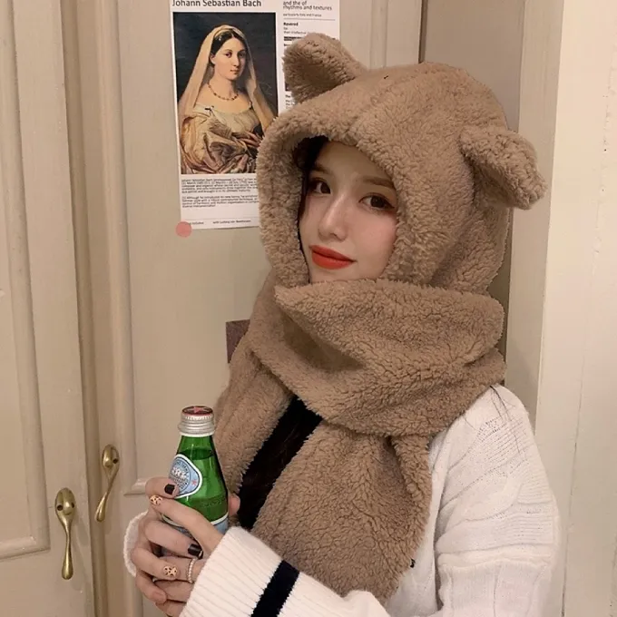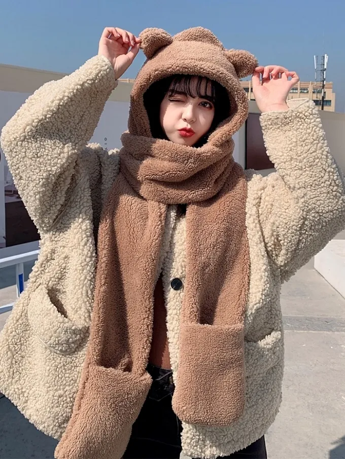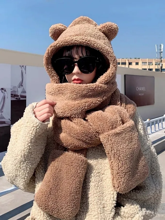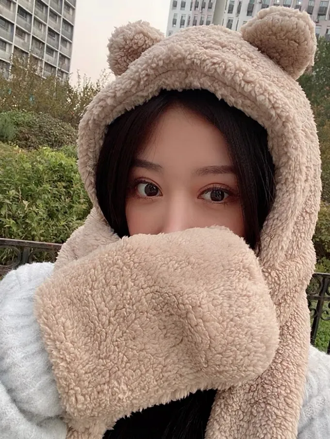 【#2022雙層加厚款 熊熊帽子圍巾】