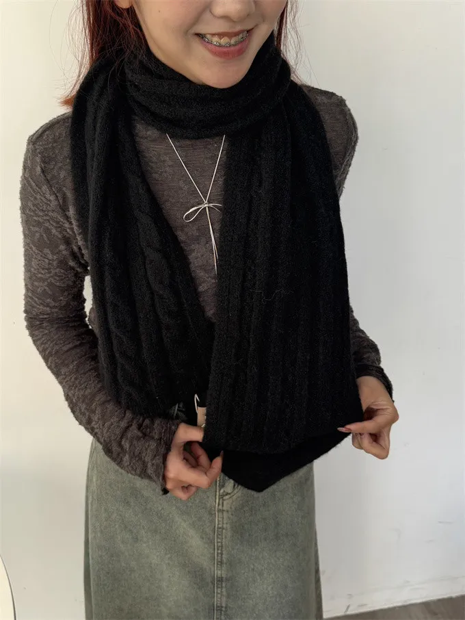 【現貨出清】韓國羊毛混紡針織毛線圍巾_A121
