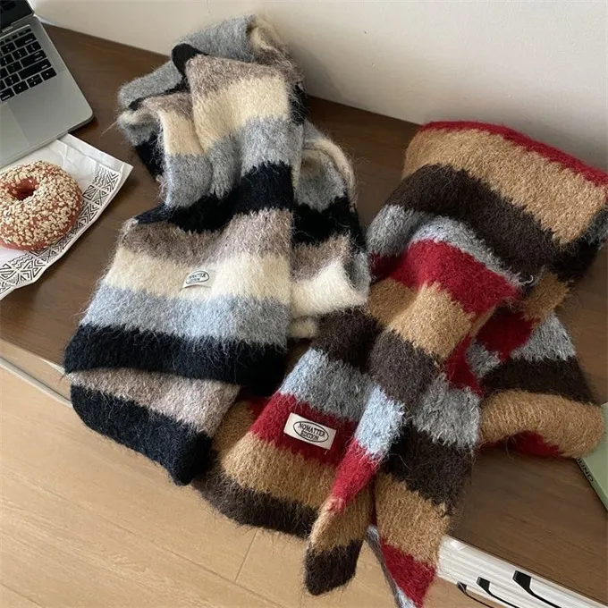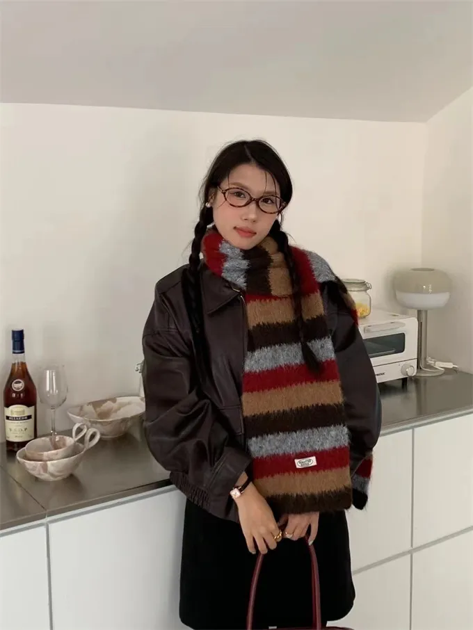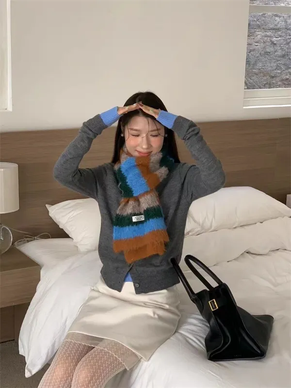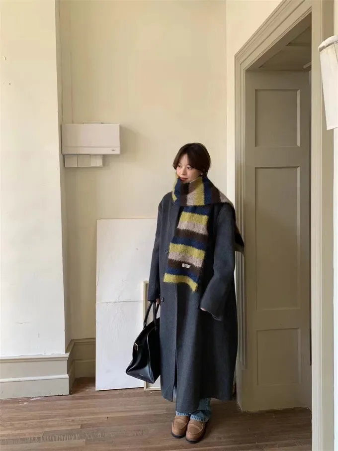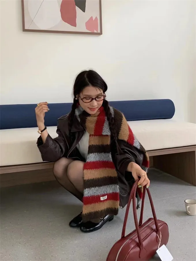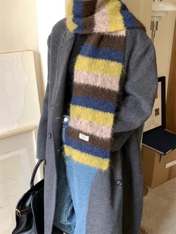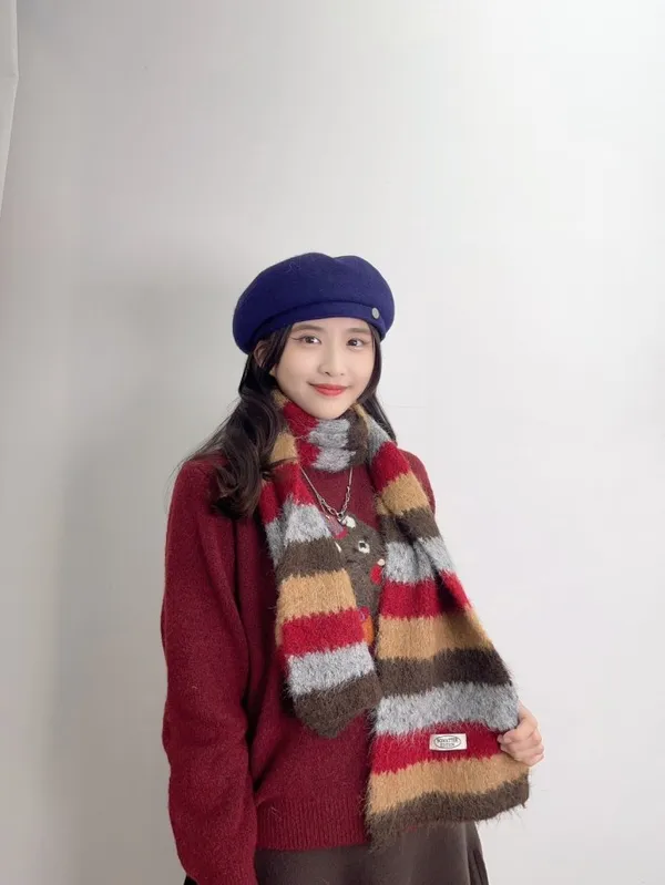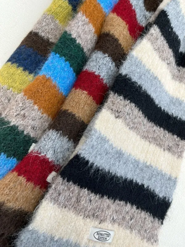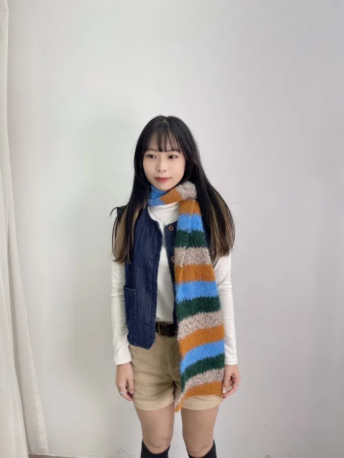 【現貨出清】ins彩條撞色感羊毛圍巾_A122