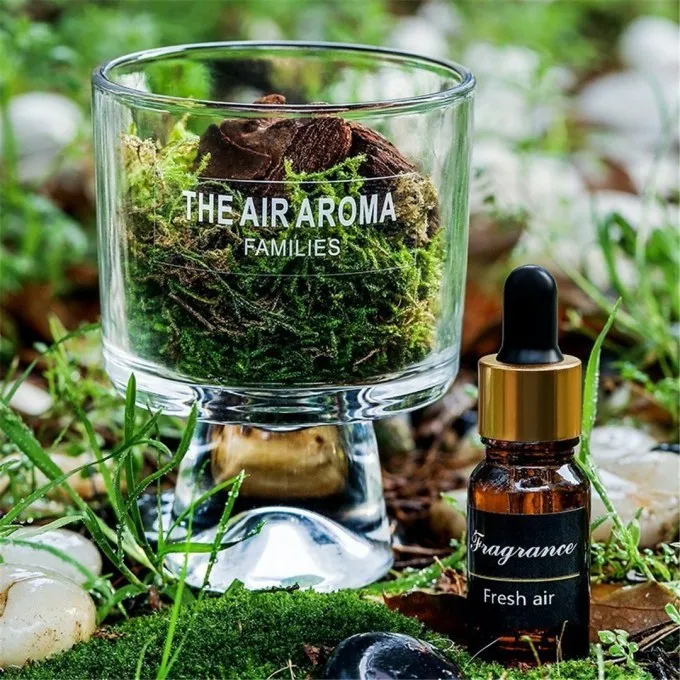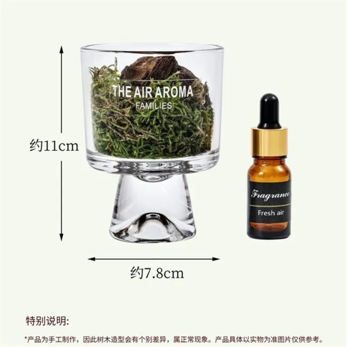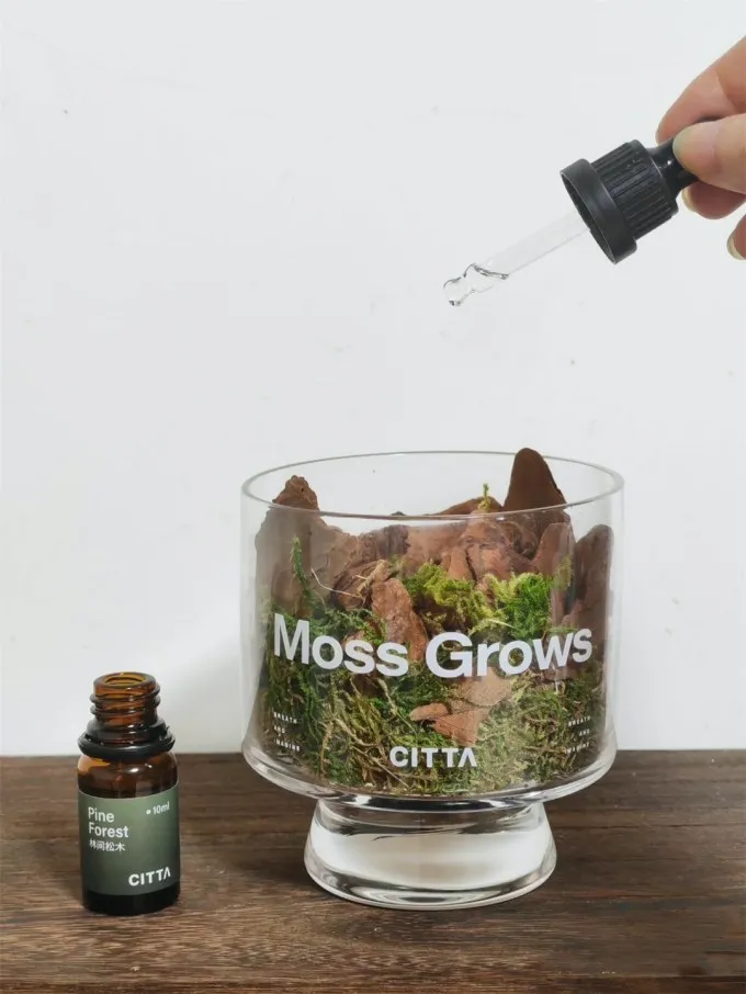 +1=ㄧ個擴香杯、一包青苔與松木塊、ㄧ瓶精油