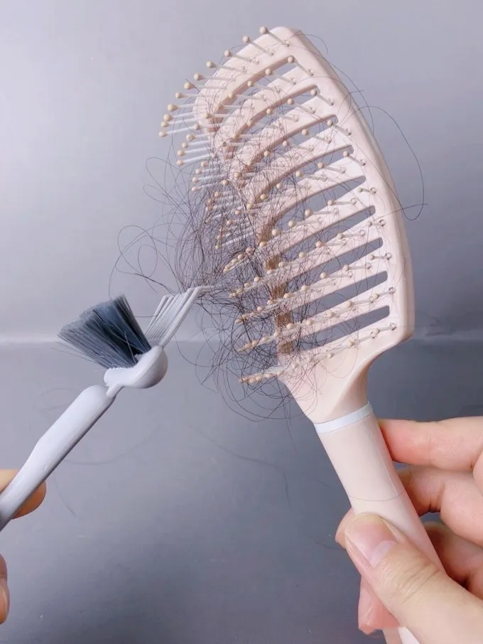 這小東西家家戶戶每個女生都會用的到! 每天都會使用的梳子和氣墊梳 頭髮、頭皮屑和灰塵難免都會附著在梳子上面 這時候 我們就需要派出這隻梳子清潔刷來幫助我們 - #毛髮爪勾 在清潔梳子與氣墊梳前 先將上面的毛髮通通勾起 這樣就可以方便清潔梳子底部 - #清潔刷 採用專利刷毛設計 能夠深入梳子中的縫隙 輕鬆將毛髮、頭皮屑和灰塵清理乾淨 同時清潔刷的刷毛柔軟且不換損傷梳子表面 可以讓妳的梳子保持光潔如新