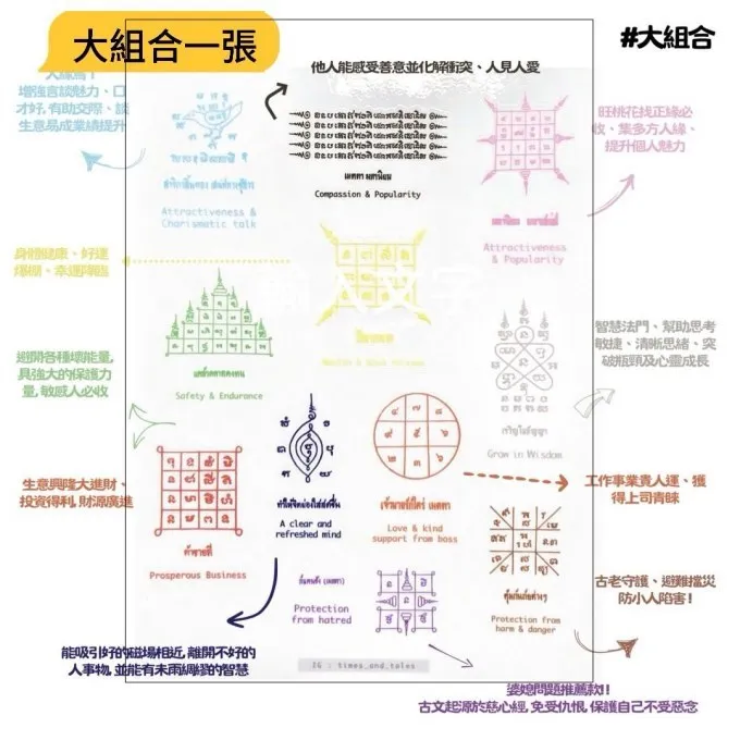 很多人都會專程到泰國做祈福求願,泰國的靈驗度大家是知道的,這個設計在初期就先在寺廟經過神明的同意、才開始製作及發行的~上面的古梵文和經文圖騰是正宗傳承下來的圖案、跟市面上設計師自由變動的文創商品完全不一樣!