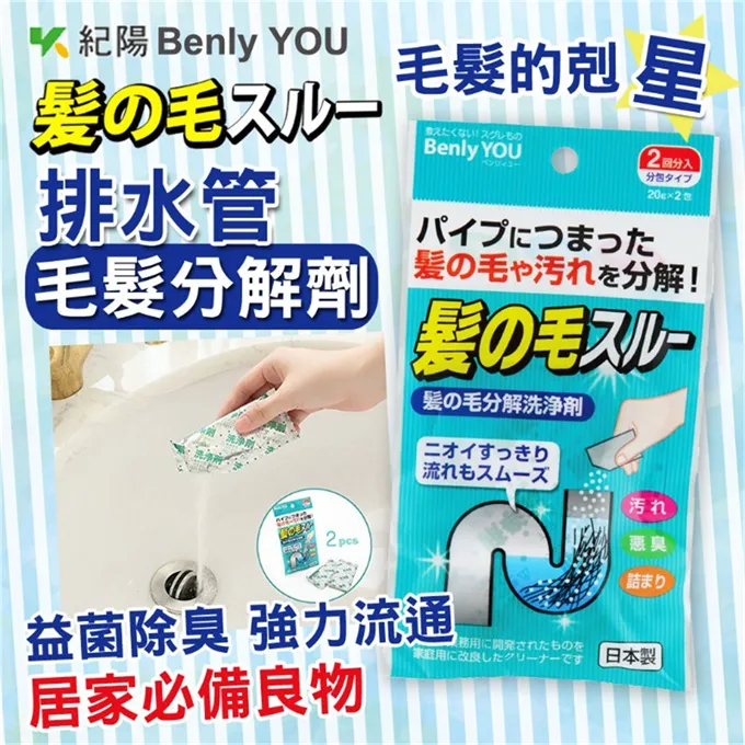活動商品:日本紀陽Benly YOU排水管毛髮分解劑,2包以上每包60元