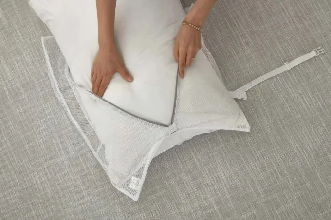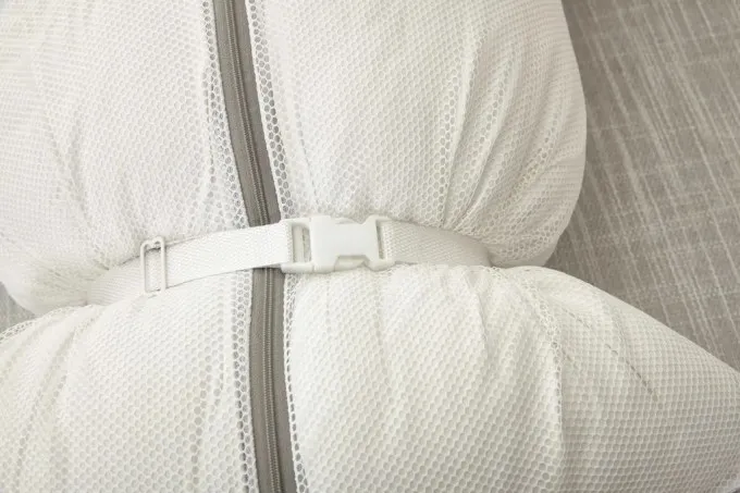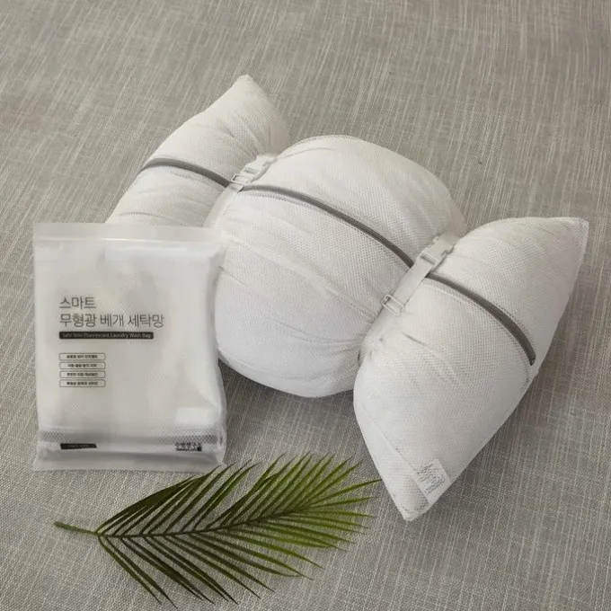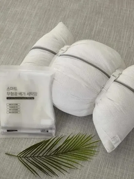 不含螢光劑 有安全扣環固定枕頭 讓枕頭不會因為清洗過程中快速轉動跟脫水而變型