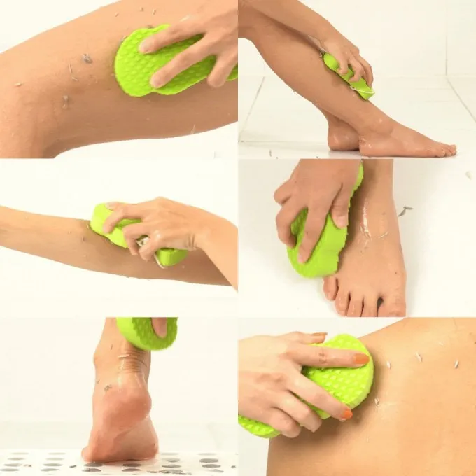 它的質地不像一般搓澡巾那麼粗暴,是柔軟的高密度泡棉,