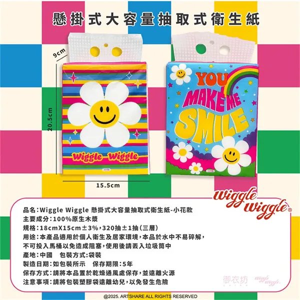 韓國 Wiggle Wiggle® 懸掛式大容量抽取式衛生紙小花款
