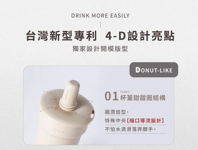 (7)杯蓋中央有【縮口導流】甜甜圈設計!