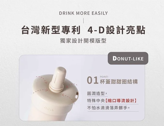 (6)杯蓋中央有【縮口導流】甜甜圈設計!